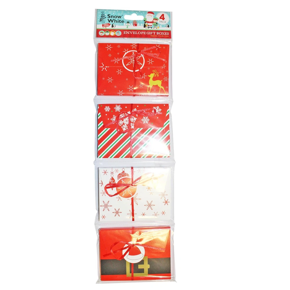 Christmas Gift Box Money Voucher Envelope Pack of 4 - B This product data sheet is originally written in English. Free UK Delivery on all orders Menu Home Shop Shop Gifts for Him Gifts for Her Gifts for Kids Photo Albums / Frames Calendars / Diaries Disney / Character Wedding Occasions Birthday Christmas New Baby Other About Us Payment Delivery Returns Contact Us Menu Categories Gifts for Him Gifts for Her Gifts for Kids Photo Albums / Frames Calendars / Diaries Disney / Character Wedding Occasions Birthday Christmas New Baby Other shop pages Home About Us Delivery Payments Terms Returns Contact Us Christmas Gift Box Money Voucher Envelope Pack of 4 - B Description Description Payment Delivery Returns Contact us Christmas Envelope Gift Box Pack of 4 These Christmas Envelope Gift Boxes are an ideal solution for presenting small gifts or money in a festive and stylish manner. Each box comes pre-assembled in an envelope style, making it convenient and hassle-free. Crafted from durable card material, these boxes feature a variety of festive designs and are adorned with a ribbon for an extra touch of elegance. With 4 different designs per pack, you can mix and match to suit your gifting needs. Additionally, each box comes with a matching gift tag attached, allowing you to personalize your presents with ease. Measuring approximately 10cm x 8.5cm, these boxes are the perfect size for holding a variety of small gifts, money or vouchers making them a versatile and practical choice for the holiday season. Payment Delivery Please can you use this instead, some changes have been made. We understand that you want your purchase from Widdle Gifts to arrive in perfect condition. So, all of our products are packaged to ensure they are protected in transit. How are Widdle Gifts items delivered? All items are delivered by Royal Mail 2nd class as standard. Some purchases will be sent via courier due to weight restrictions with Royal Mail and this is at no extra cost. How much does delivery cost? All items are delivered free of charge inside the UK by Royal Mail 48 (average 2-4 working day delivery) Can I have my order faster? We can send orders via Royal Mail 24 (average 1-2 working day delivery) for a small additional cost (depending on the specific item) We also offer Guaranteed Next Day delivery for all items ordered before 12:00 (please note that this does not included Saturday deliveries), costs for this service is also item specific. All costs are included in the items listing. Where do you deliver to? We can deliver purchases to any postal address in the UK including all BFPO addresses, England, Wales, Scotland, Northern Ireland, Channel Islands, Isle of Man, Orkney, Shetland and all of the Scottish Highlands and Islands. We post purchases all over the world and have deliveries leave us on a daily basis. What days can you deliver on? We can deliver on any day except Sunday. We are unable to deliver on bank holidays. What time does delivery take place? Items sent by Royal Mail post can be delivered any time between 8am and 5pm Monday to Friday and up to 1pm Saturday. Can delivery be tracked? Items sent by Royal Mail 1st class recorded can be tracked and we will send the tracking details by email at your request when the purchase has been dispatched. Can you deliver purchases to business addresses? Yes, but delivery will be made to the main reception or mailing room for internal distribution. Can I include delivery instructions? Yes, during the checkout process you can enter delivery instructions. We will do everything possible to ensure these are adhered to but we are unable to offer a guarantee. What if the recipient is away at the time of delivery? Some products do fit through the majority of UK letterboxes. For our larger products or in cases where the item and the item has to be signed for or the recipient is not at home, then a card will be left with details of how the item can be collected or redelivered Returns You can return any product within fourteen days of purchase for a refund of the item purchase price. (Items being returned must be unopened and unused) Where goods are not defective the costs of postage and packing are not refunded. The cost and risk of returning the item is the buyer's responsibility. Contact us For enquires not covered by the items description, please contact us using the Ask A Question link near the bottom of any listing Useful Information Home About Us Contact Us Customer Service Delivery Returns Terms & Conditions newsletter Sign up for news and offers here. subscribe We also offer Guaranteed Next Day delivery for all items ordered before 12:00 (please note that this does not included Saturday deliveries), costs for this service is also item specific. All costs are included in the items listing. We can deliver purchases to any postal address in the UK including all BFPO addresses, England, Wales, Scotland, Northern Ireland, Channel Islands, Isle of Man, Orkney, Shetland and all of the Scottish Highlands and Islands. We post purchases all over the world and have deliveries leave us on a daily basis. Some products do fit through the majority of UK letterboxes. For our larger products or in cases where the item and the item has to be signed for or the recipient is not at home, then a card will be left with details of how the item can be collected or redeli Recommended products Provided by Christmas Gift Box Money Voucher Envelope Pack of 4 - A View product Christmas Gift Box Money Voucher Envelope Pack of 4 - Design C View product Christmas Pillow Gift Box 18cm Pack of 4 - Traditional / Cute Design View product Christmas Pillow Gift Box 10cm Pack of 8 - Red and White Design with Tags View product Giant Flat-pack Cardboard 'Christmas Cracker' Gift Box - Holly Design View product Disney Toy Story 4 Christmas Eve 'Flat pack' Gift Box 27cm x 26.5cm x 27cm View product Christmas Treat Box with Handle Christmas Eve Gift BOX Son View product Christmas Treat Box with Handle Ch