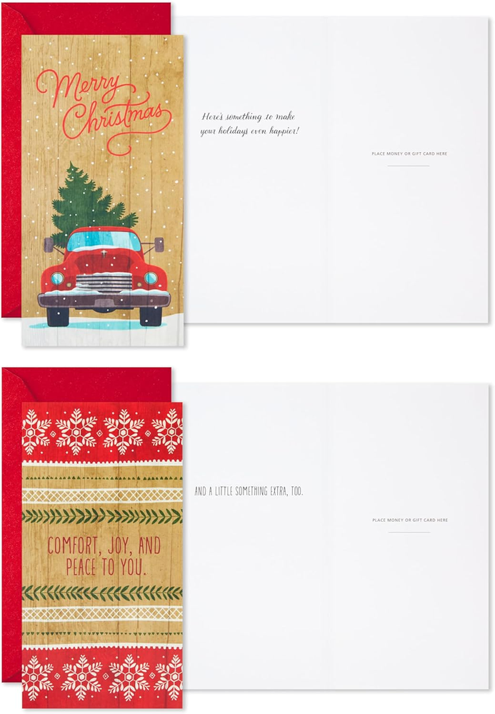 Store New Arrivals Add to Favorite View Feedback Contact Christmas Gift Card Holders or Money Holders Assortment, Rustic (36 Cards with Envelopes) Description Item model number 5CZE1033 Closure Gummed Number of Items 36 Color Rustic Holidays Money Holder Assortment Material Type Paper Manufacturer Part Number 5CZE1033 Item Weight 11.2 ounces Shape Other Pre-printed holiday Manufacturer Marketing Company, LLC (Office) Product Dimensions 8.3 x 4.5 x 0.01 inches Size 646 Wish friends or family members a happy holiday with a festive Christmas card and a gift card or cash. Holiday card pack includes 36 cards in six designs (6 of each design) featuring rustic icons like vintage red trucks, pine trees, and buffalo plaid prints. Each design includes a unique sentiment inside. Christmas money or gift card holders can accommodate any standard size gift card and are perfect for friends, family, and kids. Holiday cards measure 4.5" x 8.3" and come with coordinating envelopes. Printed on high quality paper stock, Hallmark's greeting cards are made with paper from well-managed forests. The perfect way to present a Christmas gift, these holiday cards have a special spot inside for gift cards, cash, or checks. Loved ones near and far are sure to appreciate your gift as well as your personalized sentiment inside the cards. Thoughtful gift card or money holders make celebrating the season and holiday gift giving easier than ever before. The Hallmark brand is widely recognized as the very best for greeting cards, gift wrap, and more. For more than 100 years, Hallmark has been helping its customers make everyday moments more beautiful and celebrations more joyful. ABOUT US We offer the best prices around on high quality products. Our E-store includes media such as books, movies, music and games while offering electronics, toys, sporting apparel, clothing, tools, general home, garden items and more. SHIPPING We are always working hard to ensure your package arrives as soon as possible. Please understand that some factors like weather, high postal traffic, and the performance of shipping companies are outside of our control. We offer free shipping to the lower 48 states and ship within 2 business days of payment, usually sooner. We do not accept P.O. Boxes. Please provide a physical address. RETURNS We offer a 30-Day Return Policy on items which you are not completely satisfied with. You have the option for a full-refund or an exchange of the item. No returns are available on items shipped outside of the USA. PAYMENT We accept PayPal. CONTACT US This page content is yet to come Please ad us to your favorite seller and visit again later Thank You CUSTOMER SATISFACTION We try our very best to make sure every customer is completely satisfied. If there's a problem, message us! We're happy to help.