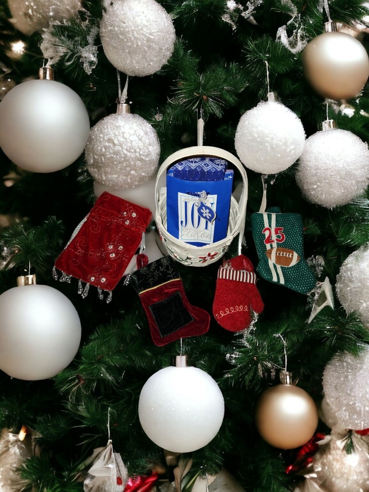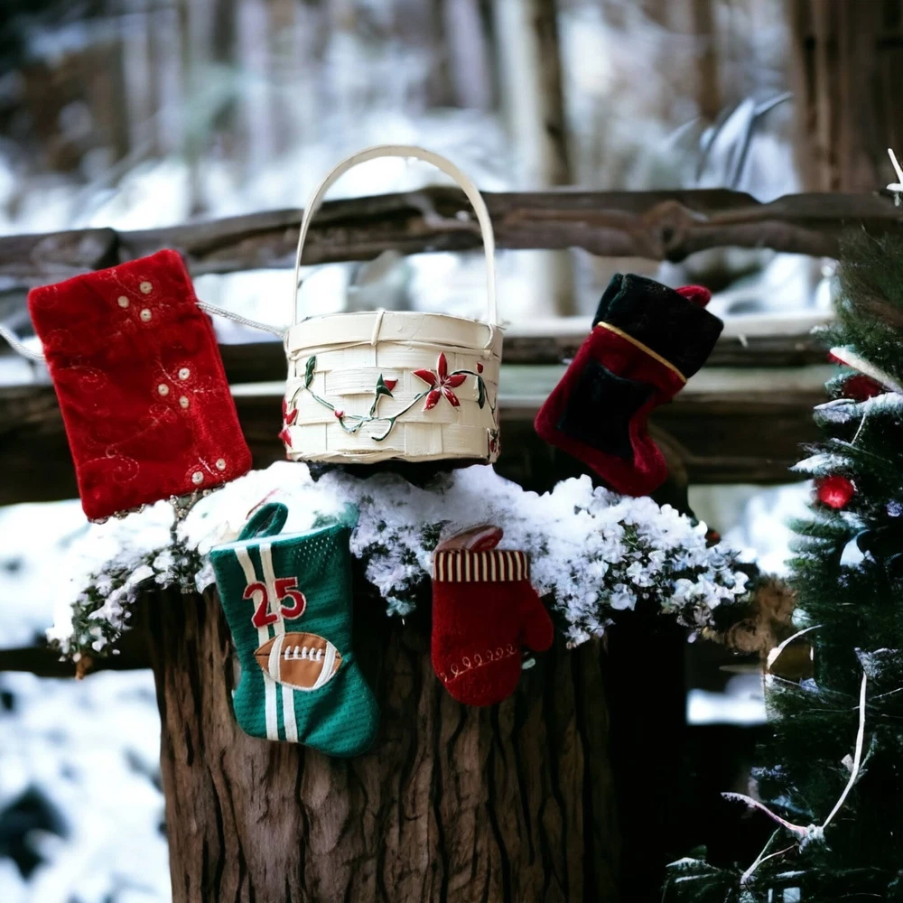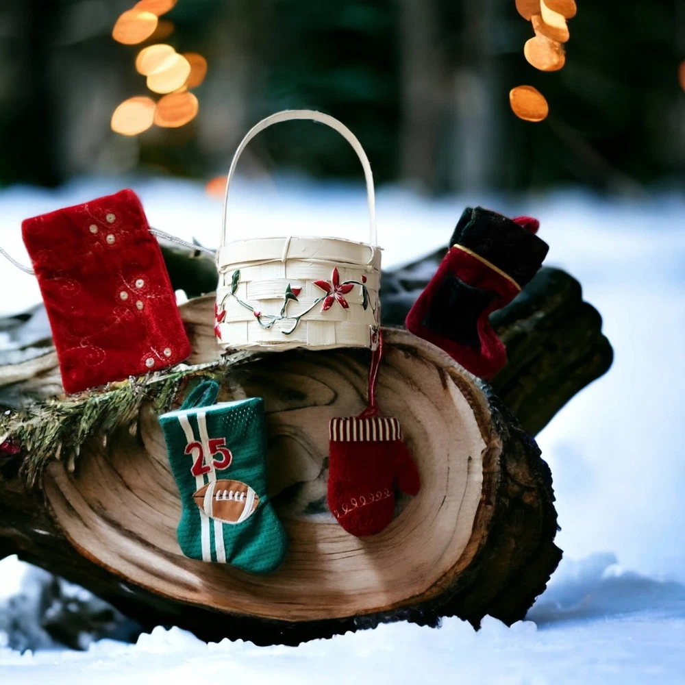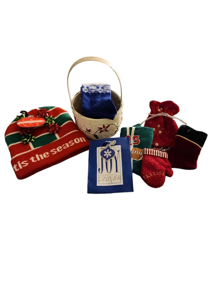 Christmas Gift Card Holders/Gift Bag Assortment w/ Christmas Socks and Christmas Beanie This Christmas, surprise your loved ones with these beautifully designed gift pouches. Made with high-quality cloth, paper, and velvet material, these gift card holders come in various colors and are perfect for small-sized gifts. The contemporary style and solid pattern make them an ideal choice for all adult family members. These gift pouches are perfect for any occasion, especially Christmas. The assortment includes different sizes to accommodate your gift needs. The vintage-inspired design adds a touch of nostalgia to your presents, while the personalized option allows you to add your own touch. Make your gift-giving experience even more special with these Christmas gift card holders. Hang on Tree-Assorted Sizes (Good Quality) 1) Red Pouch-6.75" x 5" 2) Green Football Stocking-5.25" x 4" 3) Dark Red/Green Stocking with Pouch-5" x 3.5" 4) Red Terry Mitt Stocking- 4" x 2.5" 5) Blue/White "Joy" Snowflake Paper Gift Bag 5"H x 4"L 6) Blue/White Snowflake Socks (one pair) 7) White Christmas-Light Socks (one pair) 8) Tis the Season Red-Green Christmas Beanie (one size) 9) Beautiful Mini White "Holly" Basket 5"W x 3"D x 3"H ( 9"H Top to Bottom) 10) Three (3) Resusable Large Gift Bags w/Handle -Size 15"x14"x 6" Note: Gift Cards Not Included