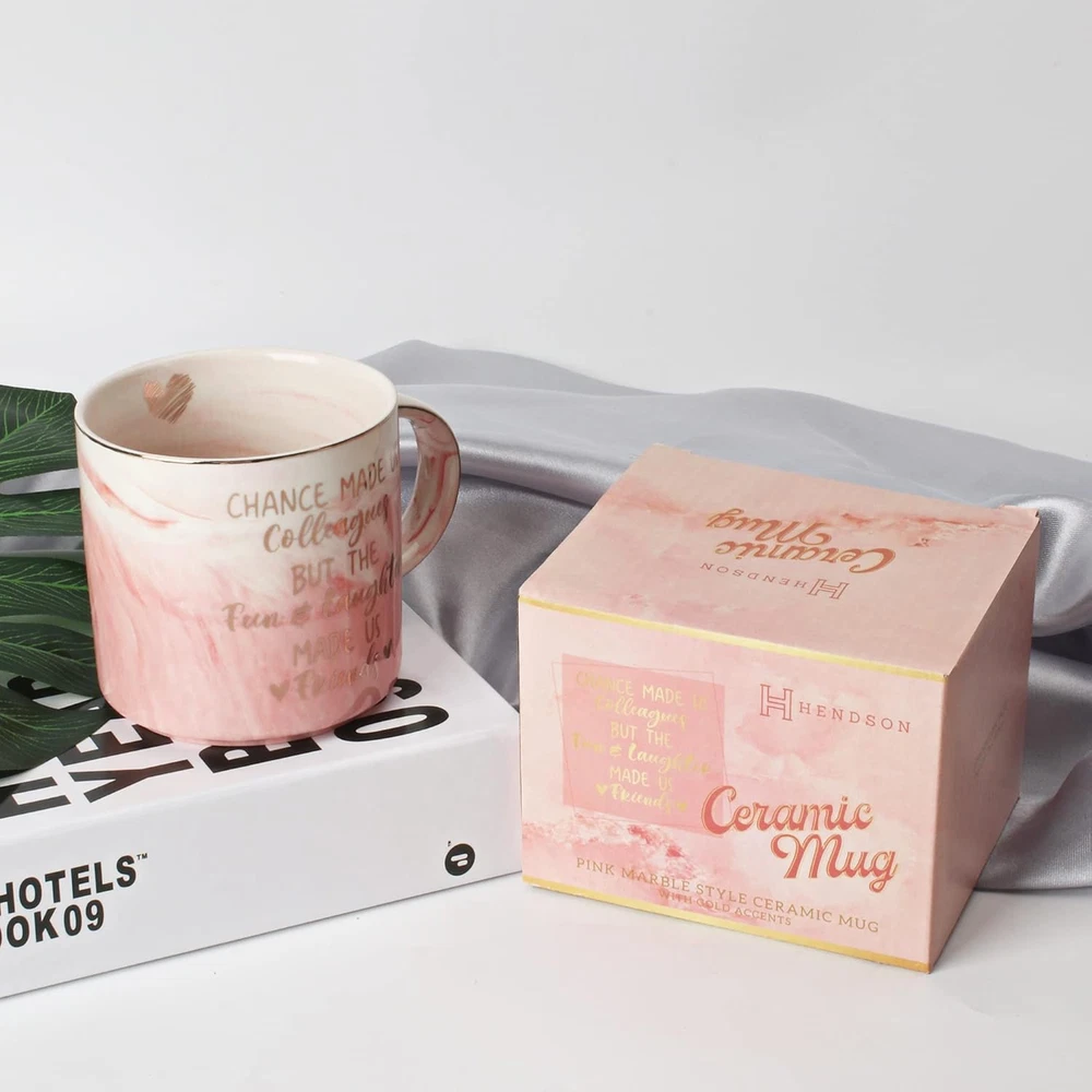 💕 PERFECT GIFT FOR YOUR COWORKER THAT BECAME A DEAR FRIEND: Let your coworker know they’re loved with this stylish mug from Hendson. Your colleague who became a friend will feel loved and special to get this gift. 💕 LET YOUR COLLEAGUE KNOW YOU CARE: This Hendson tea mug is the perfect gift for any coworker who turned into a great friend. If you’ve laughed and had fun with a colleague at work, give them this present to let them know you care. 💕 A GREAT GIFT FOR ALL OCCASIONS: This coffee mug makes a great gift for a colleague’s birthday, a coworkers promotion, a going away gift, a new job gift, an engagement or wedding gift for colleague. 💕 PINK MARBLE MUG WITH GOLD LETTERS: Our coffee cup is beautifully designed with a classy and elegant pink marbled texture. The gold letters are subtle but bright. The mug will look great on a desk or office kitchen. 💕 ORDER YOUR ADORABLE PINK MUG RISK-FREE: Our customers' satisfaction is our priority. If you're not 100% satisfied with your purchase, we’ll make it right to ensure your happiness. Product Description