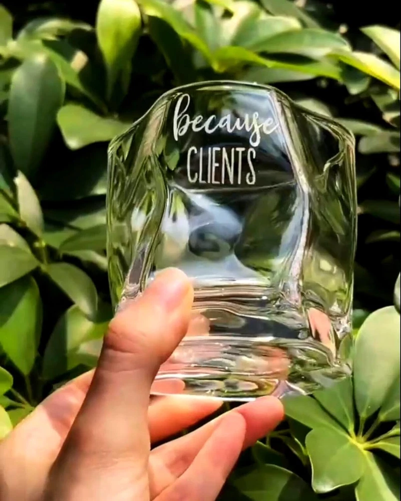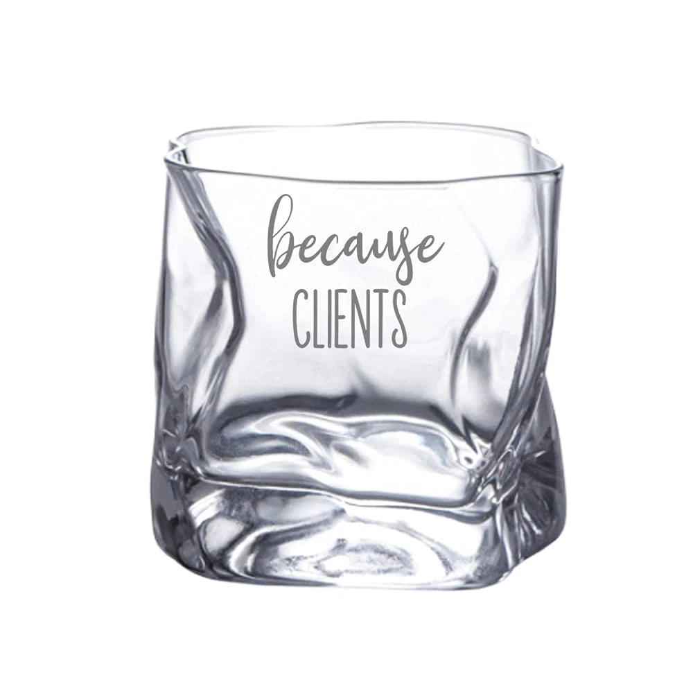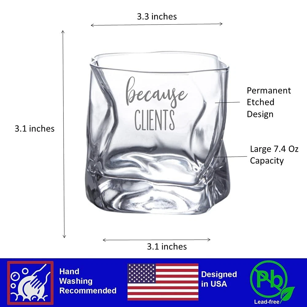 Christmas Gifts for Dad, Because Clients Funny Etched Whiskey Glass Tumbler for