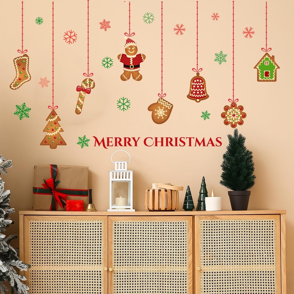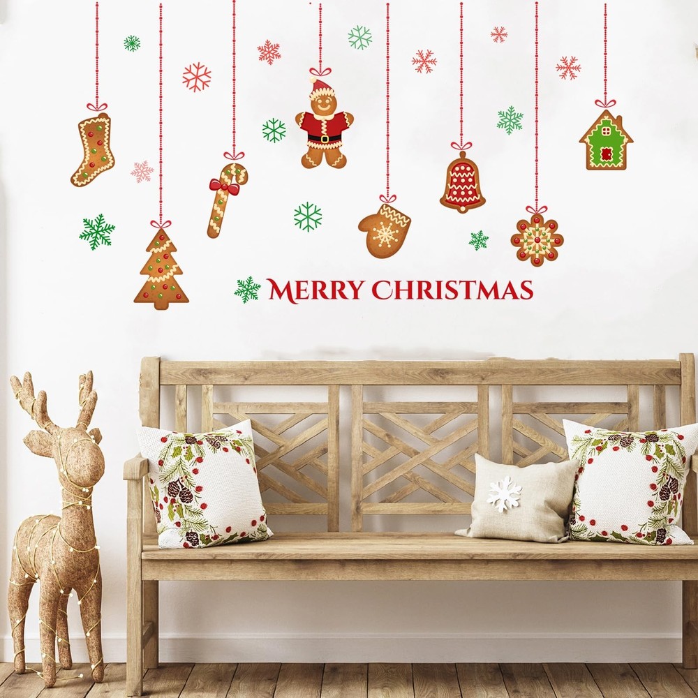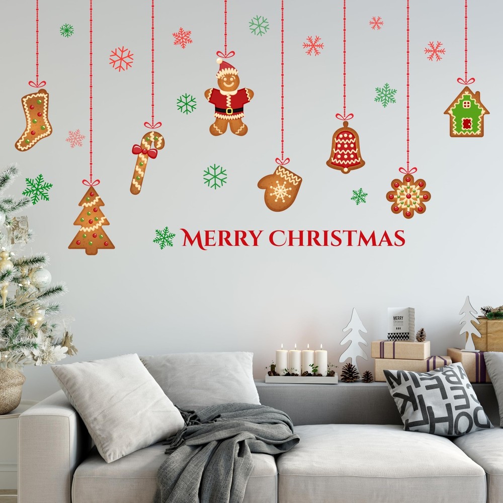 Christmas Gingerbread Wall Decals Removable Vinyl Xmas Wall Stickers Christma...