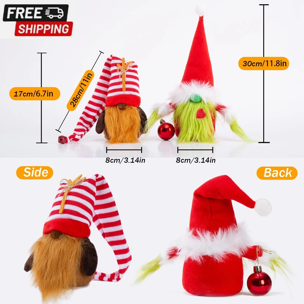 Fast Shipping On All Items 30 Days Money Guarantee Customer Support Excellent Service 100% Satisfaction Satisfaction Guaranteed Christmas Gnomes Decorations 2-Pack Handmade Swedish Tomte Plush Gnomes Scandinavian Santa Elf Christmas Table Tiered Tray Ornament Christmas Decor Gifts Specification Item Weight 10.1 ounces Item model number 2GNS-GLG Product Dimensions 3.14 x 2.55 x 11.8 inches Country of Origin China 2.55 inches x 3.14 inches x 11.8 inches. Weight: 10.1 oz Item Description 🎄【Unique Christmas Gnomes Ornaments】——The perfect combination of the classic restored green-bearded gnomes and cute animal gnomes, the unique style will bring family happiness. Their beards, arms, hats, Christmas balls, bells and shapes clearly accentuate the Christmas theme and festive mood. They make the best plush Christmas gnome gifts. 🎄【Quality Materials and Handmade】--The Christmas gnomes are all handmade by professional craftsmen. The hat is made of high-quality knitted material, which is eco-friendly. There is sand on the bottom to make sure the Christmas gnome sits stably on its own and doesn't tip over easily. The material is comfortable, soft, fluffy and neatly sewn. Non-toxic and tasteless. 🎄【Personalized Design】-- This pair of lovely Scandinavian gnomes decorative hats have cotton and wire. the hat and hands can be bent and fixed.You can make cute and interesting poses to make Christmas decorations more vivid. 🎄【Indoor Christmas Gnome Decorations】-- Decorate your room with these plush gnome kits and place on desks, tables, tiered trays, sofas, bookcases, shelves, dining tables, bedsides, Christmas trees etc. To add festive atmosphere and bring love and happiness. 🎄【NOTE AND SERVICE】The gnome is compressed during packing and shipping, please help to reshape and adjust the bottom to make it stand stably. If you have any dissatisfaction with the product or any questions or suggestions, please feel free to contact us, we will reply promptly. Product Description BWFY - Best Wishes Focus on Christmas Decoration Products A Lucky Christmas Ornament Gift to Gnome Collection Features ORIGINAL DESIGN - The Gnome's unique design impresses and is different from other common styles on the market. EXCELLENT WORKMANSHIP - Each Gnome is made by expert craftsmen using high quality materials, soft felt and a comfortable touch. Classic colors - red and green are the exclusive colors of Christmas, and the contrasting colors bring confidence and energy. DIY Hat and Hand Poses - The wires in the gnome hands and hats can be bent into any pose you like. Weighted Bottom - The weighted base keeps it upright and the perfect size to fit anywhere. Christmas Decorations - Create a cozy and fairytale-like atmosphere indoors and surprise you and your family with Christmas. Perfect Christmas Decorations Adorable gnome plush, delicately handcrafted, designed for Christmas holiday decorating, perfect for decorating your table, table, table top, shelf, tiered tray and more. High-quality materials Christmas gnomes with long beards are made of soft felt, knitted hats and stuffing. With a heavy base, the gnome has extra stability for balance. Ideal Gift Choice Simple and stylish looks will be loved by your family and friends, this is a unique Christmas gift for them, gnomes will bring good luck and happiness to your loved ones. Idea Holiday Gifts Gnome is the wonderful decoration and gift for many holidays, Christmas, New Year, Thanksgiving , Birthday and other festivals. It is ideal for spreading holiday spirit in the house. About us We offer the best prices around on high quality products. Our E-store includes media such as books, movies, music and games while offering electronics, toys, sporting apparel, clothing, tools, general home, garden items and more. Shipping We are always working hard to ensure your package arrives as soon as possible. Please understand that some factors like weather, high postal traffic, and the performance of shipping companies are outside of our control. We offer free shipping to the lower 48 states and ship within 2-3 business days of payment, usually sooner. We do not accept P.O. Boxes. Please provide a physical address. For shipping outside of the continental USA, we only use eBay's Global Shipping Program.The item is shipped to KY and then sent to the rest of the world. International customers are responsible for all duties and taxes. Continue to check out to calculate costs for shipping the item to your country. Messages regarding eBay's Global Shipping Program MUST be directed at eBay EXCLUSIVELY. Returns We offer a 30-Day Return Policy on items in which you are not completely satisfied with. You have the option of a full-refund or an exchange of the item. No returns are available on items shipped outside of the USA Satisfaction We try over very best to make sure every customer is completely satisfied. If there's a problem, message us! We're happy to help. Payment Options Shop With Confidence