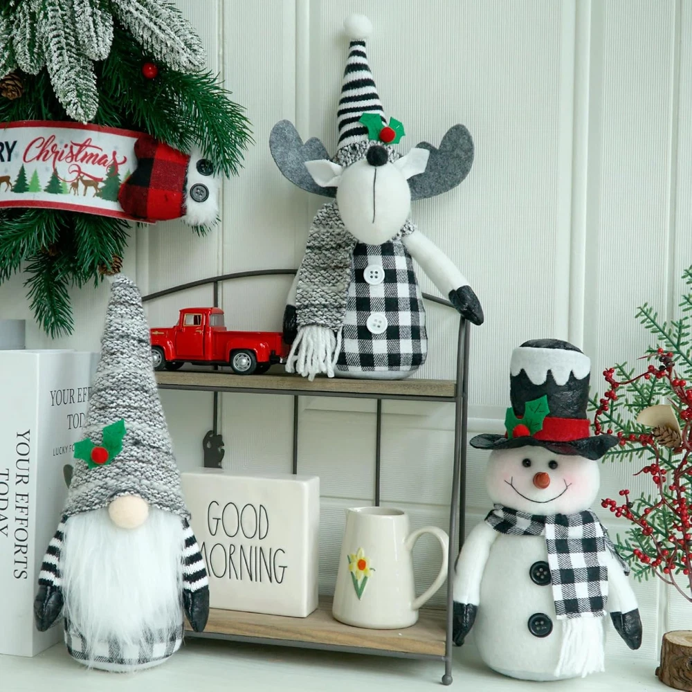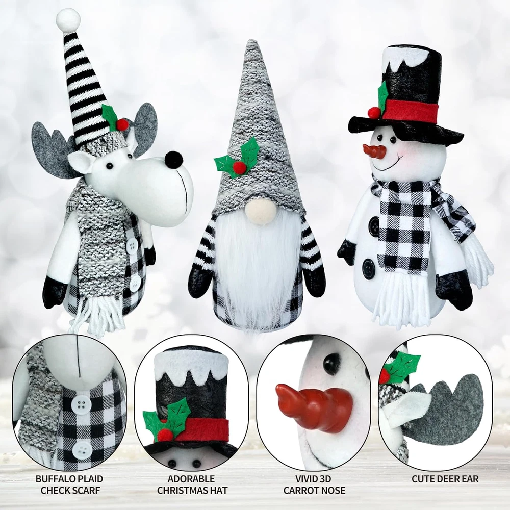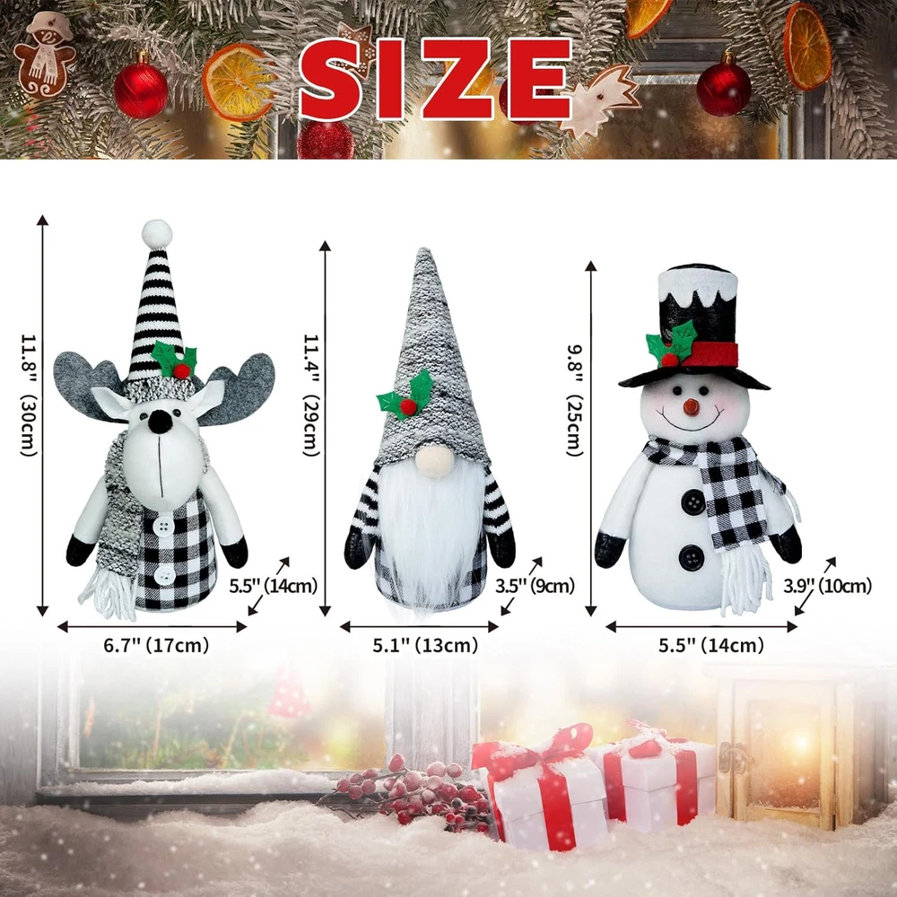 Christmas Gnomes Plush Decor, 3Pack Handmade Reindeer Plush,Winter Snowman Gnome