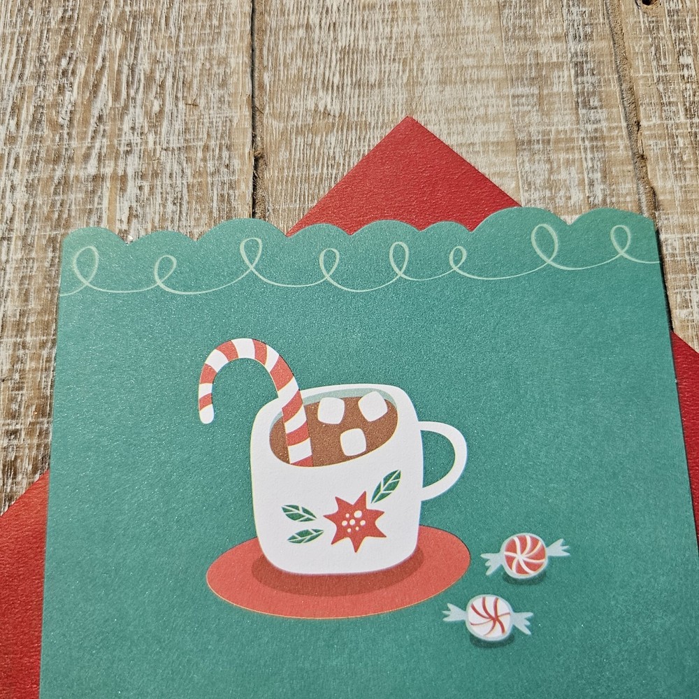 Hallmark Christmas Greeting Card 5x7 Green Hot Chocolate Mug Swirls Peppermint 5" x 7" card with matching envelope Condition: new **This items ships with limited tracking via USPS First Class.** **The standard time is 5-7 business days for delivery but it may take up to 10 days.** Search thousands of cards for all occasions in our eBay Store.