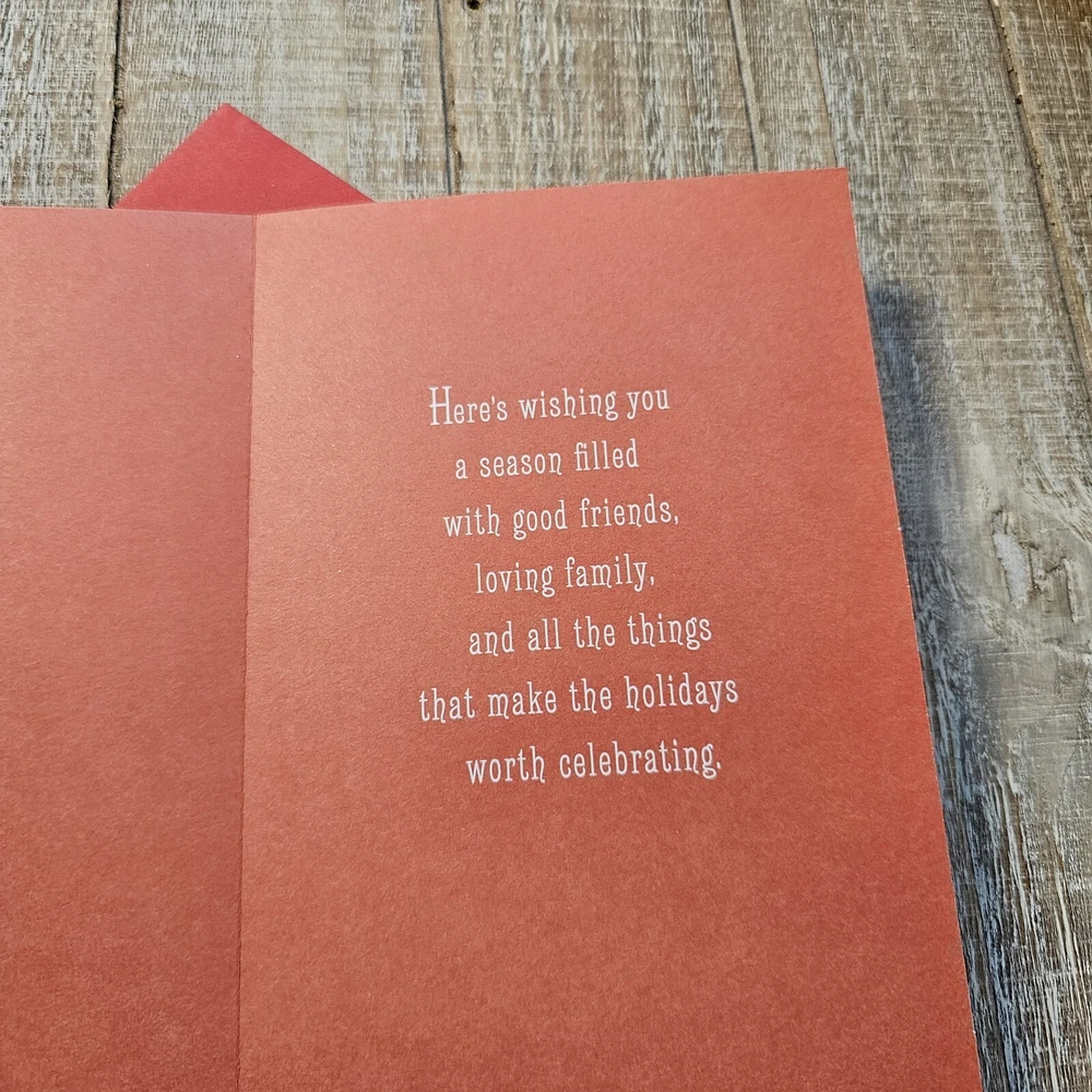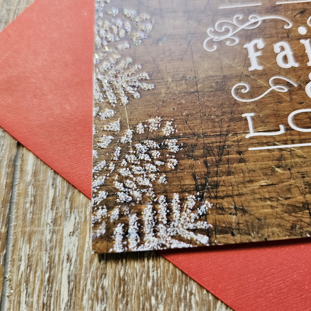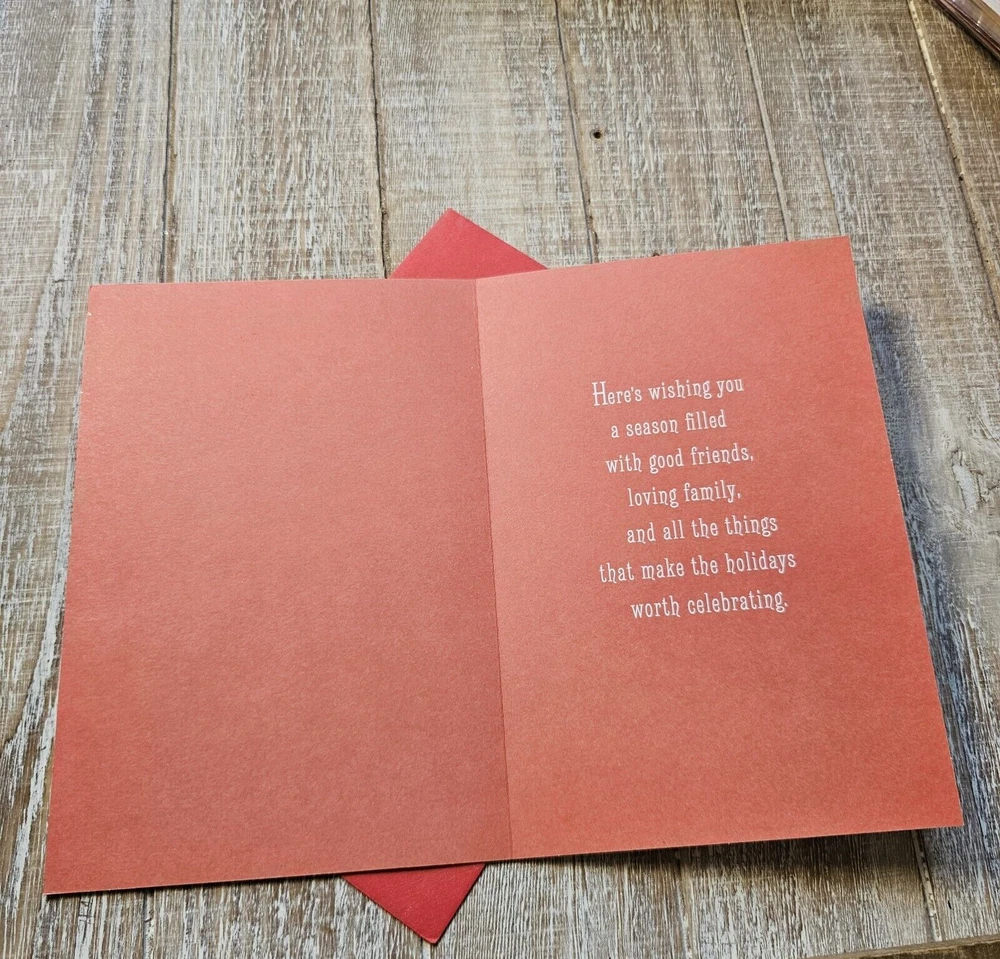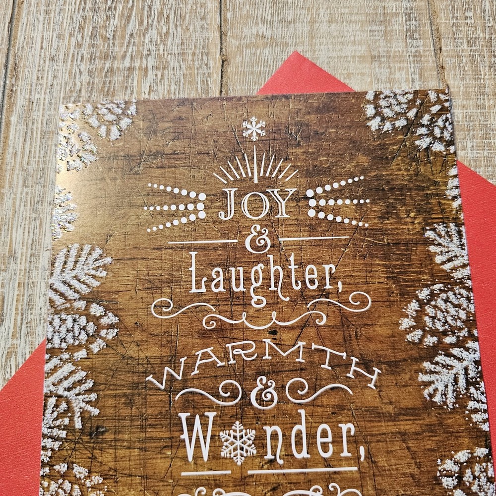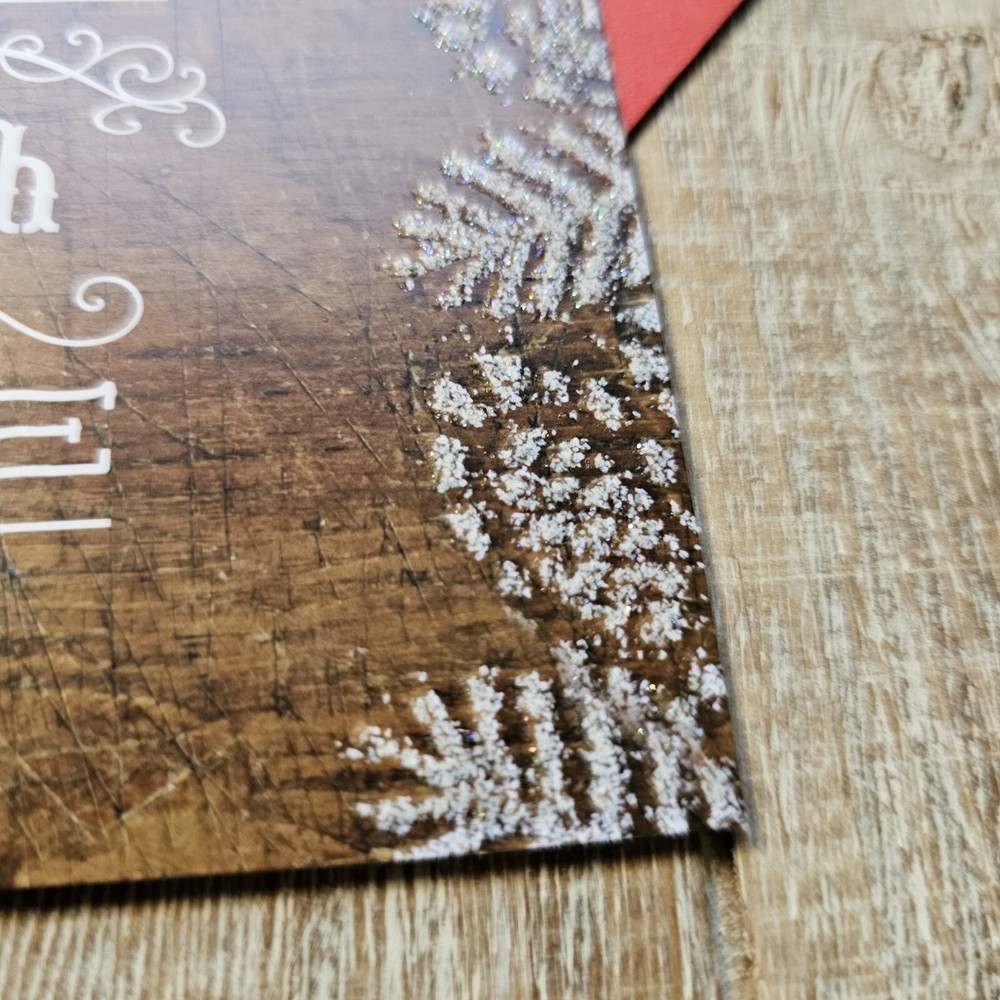 Hallmark Christmas Greeting Card 6x8 Wood Grain Brown Glitter Pine Red Full Size 5.5 x 8 inch card with matching envelope Condition: new **This items ships with limited tracking via USPS First Class.** **The standard time is 5-7 business days for delivery but it may take up to 10 days.** Search thousands of cards for all occasions in our eBay Store.