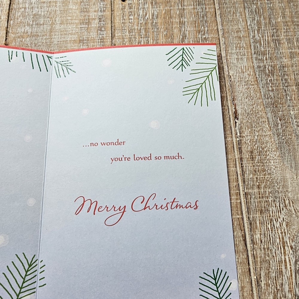 $ 2.11Christmas Greeting Card 6x8 Wood Grain Brown Glitter Pine Red Hallmark