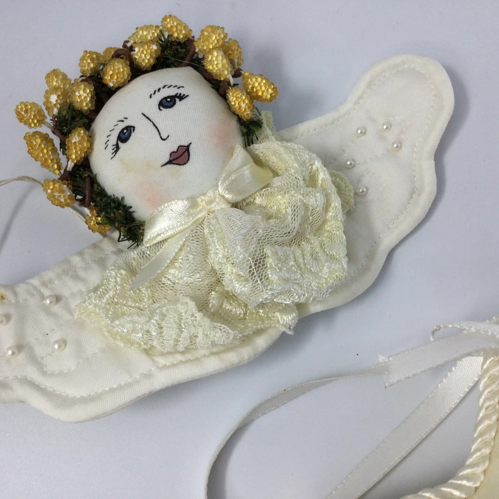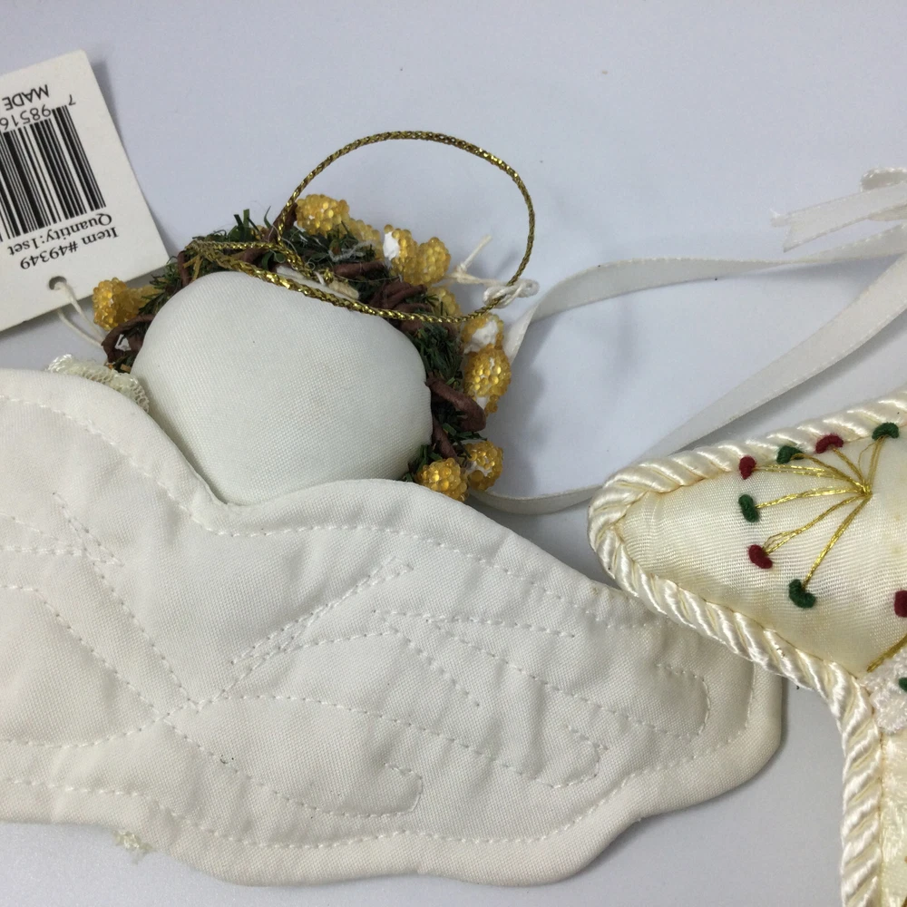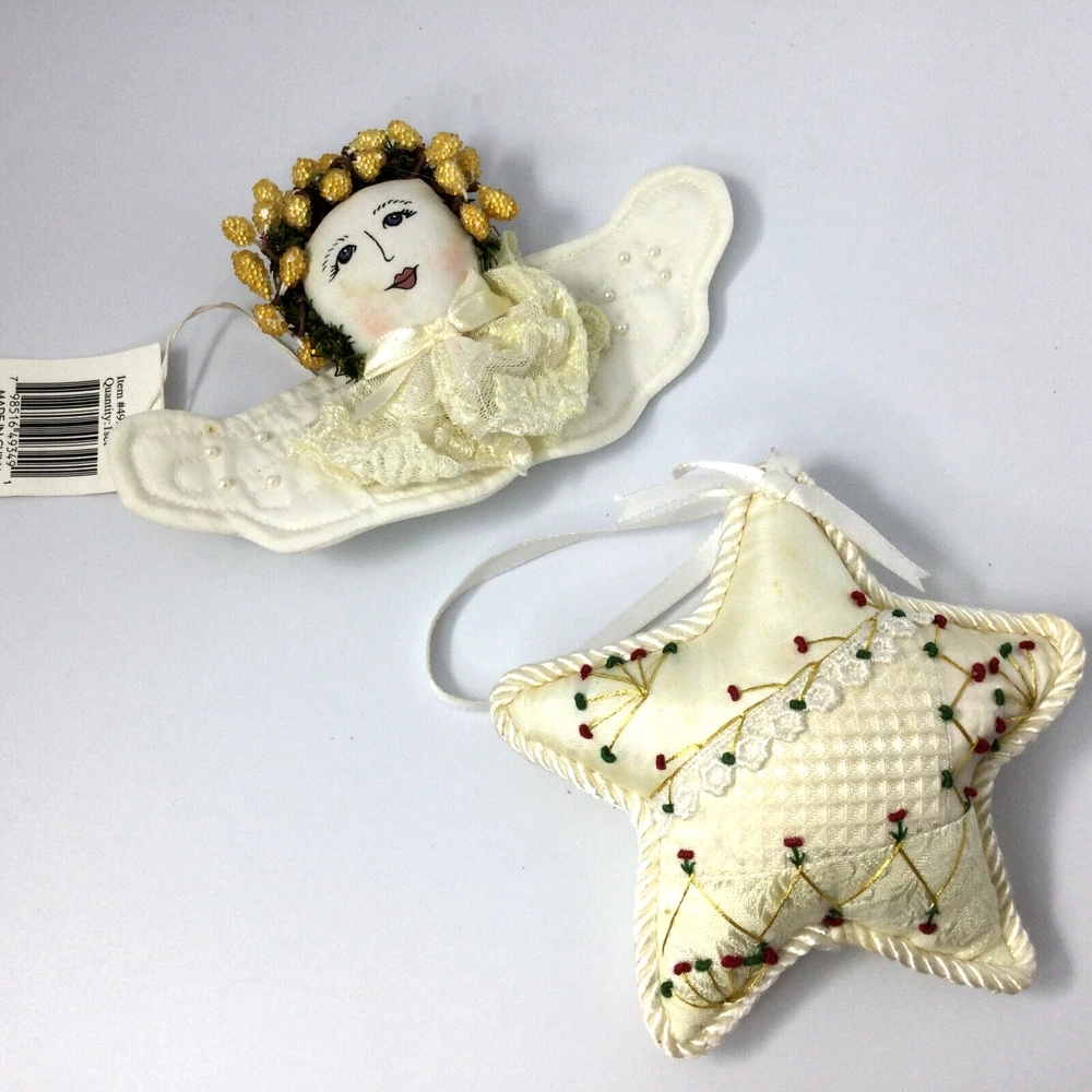 Christmas Tree Hanging Ornaments Fabric Angel and Star. Very good condition, no damage. Angel is 6" W and Star is 5". InvN/GWB/1