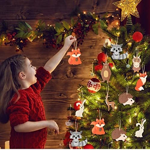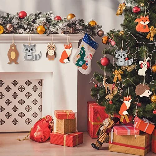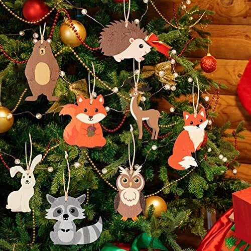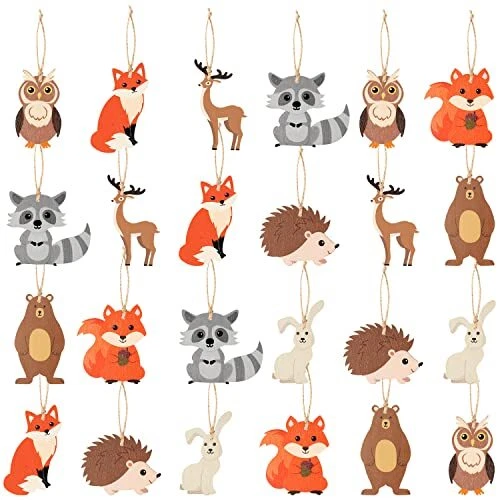 Christmas Hanging Wooden Ornaments 25Pcs Rustic Forest Owl wolflend Animal