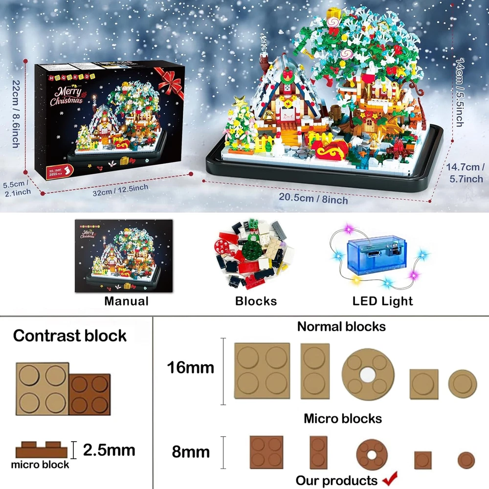 PLEASE NOTE they are 2.5mm MICRO BLOCKS which is not compatible with the main brand bricks EXQUISITE DETAIL DESIGN - Dive into the festive fun with the HOGOKIDS Christmas Gingerbread House Building Blocks! Featuring intricately designed elements like a gingerbread house, a snowy tree house, Christmas tree, sled, bonfire, snowman, and Santa's big gift, this Christmas holiday house set will be a delightful addition to your holiday decorations STUNNING LED DECOR - Light up your holiday spirit with the adjustable LED light strip included in the winter house building block set. Whether it's day or night, your gingerbread Christmas house will shine as a mesmerizing centerpiece for your festive decor and will be a staple in xmas decor for years to come SAFE AND CHALLENGING FUN - Crafted from high-quality ABS material, these safe, non-toxic xmas gingerbread building kits provide an engaging challenge with their 2055 pcs micro bricks, perfect for nurturing patience and creativity in builders aged 10 and up EASY TO ASSEMBLE - Forget the chaos—our HOGOKIDS clear instruction manual and clearly labeled, numerically packaged pieces will definitely make building your Christmas snowhouse building toys smooth and enjoyable for the whole family, ensuring you spend more time celebrating and having fun IDEAL CHRISTMAS GIFT - Ideal for both kids 10+ and adults, these 2024 Christmas holiday house building kits are the best gift to share quality time with your family. Build together, laugh, and create lasting memories with your own xmas tree house and Santa's workshop Product Description 2024 HOGOKIDS THE LATEST CHRISTMAS GINGERBREAD HOUSE BUILDING BlOCK SET LED Light Illuminate Your Holidays Featuring a charming LED light string, HOGOKIDS Christmas gingerbread house will become the centerpiece of your holiday décor, radiating festive cheer day and night. Whether it's propped up on a mantel or displayed on a holiday table, it's guaranteed to bring smiles and wonder to all who see it! Exquisite Details That Delight Special Tree Roof Exquisite Sledg Little Cute Bear Together Time is the Best Time Comprised of 2055 micro 2.5mm building bricks, this Christmas house building block toy is a challenging yet rewarding experience for budding builders. With the sophisticated HOGOKIDS Christmas winter village building toy, be ready to say goodbye to screens and hello to quality family bonding! Build, laugh, and create unforgettable memories together during this magical season.(PLEASE NOTE they were MICRO BLOCKS which is NOT compatible with most major brand) Ideal Christmas Gift for Boys Girls & Adults This enchanting Christmas gingerbread building block set is irresistible to kids 10+ AND adults alike! Perfect for anyone aged 10 and up, it’s a creative way to celebrate the holiday spirit. Need help? Fear not! Little ones can join in on the fun with parents assistance to complete this festive masterpiece. So gather your loved ones, unleash your creativity, and dive into the magic of Christmas with the HOGOKIDS Christmas Gingerbread House Building Block Set! It’s bound to become a beloved holiday tradition! Everything seems to be about electronics these days. So if you have the ability to turn off phones and tablets to accompany kids, HOGOKIDS offers your child a fun way to expand their curiosity and creativity by exploring more possibilities and letting their imagination run wild. Total 2055 Pieces Building Bricks 1 x User Manual 1 x LED Light Brighten Up Your Christmas Vacation Warm Tip Santa is not included in our block sets, because Santa is busy delivering elaborate presents to everyone this year! However, do not worry. Santa has his trusty little helper bear keeping you company as you create your festive village! Distinctiveness Imagination & Creativity Challenging & Patient Great Christmas Decoration