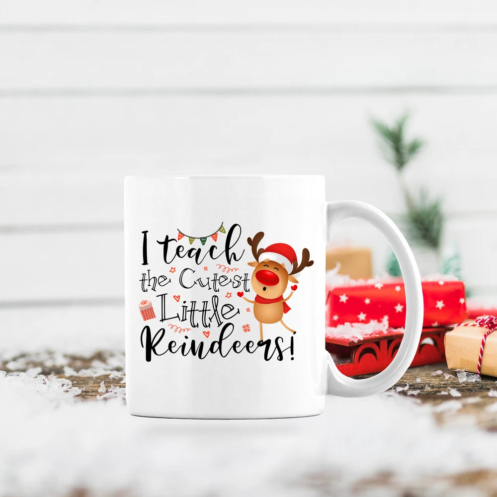 Christmas I Teach The Cutest Little Reindeers Mug Reindeer Mug Teacher Xmas Gift Product Details.. This high quality 11oz. ceramic white mug has a premium hard coat that provides crisp and vibrant color reproduction sure to last for years. Perfect for all hot & cold beverages. The highest quality printing possible is used. It will never fade no matter how many times you wash it. Material: 100% Ceramic. Print both sides. Dishwasher and Microwave Safe. High Gloss + Premium White Finish. Printed in the U.S.A. Personalized & Custom. We support personalized and custom mug to add custom, when placing an order, you can add notes to the "order note" in shipping address section. Also you can contact us directly via message. Shipping Info. Ready to ship in 1 to 2 business days, All products are made-to-order and proudly printed in the United States. Shipped by USPS and DHL, You will receive your order in 5-7 days. Replace & Refund. All products are defective during shipping broken, chipped will be replaced free of charge. You are not satisfied with the product, we will refund 100% money to you. If any other issues arise, please do not hesitate to message, we would be more than happy to assist you.