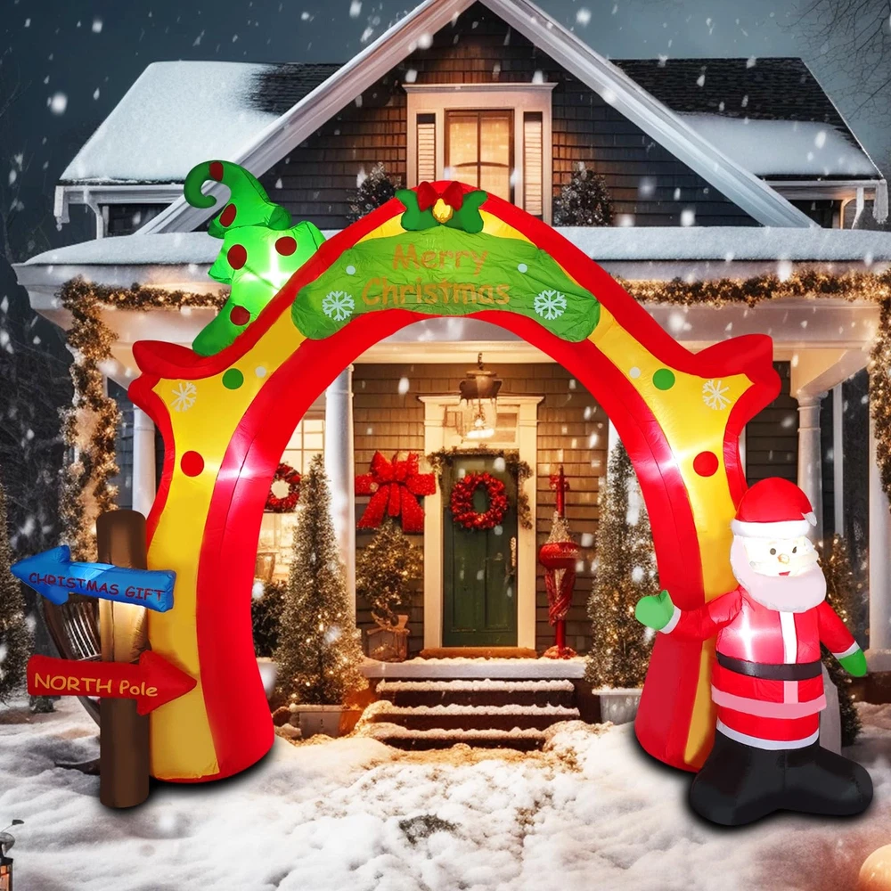 Filled with sweet, warm expectations, the streets are lined with festive costumes, silly snowmen, sleighs full of gifts, and Christmas trees hung with ornaments, colored balls, bells, ribbons, and stars streaming under the lights with a dreamy sheen. The magical moment of Christmas Eve has come. amazing Giant Inflatable Christmas Arch Decoration helps you light up the dreamy Christmas night and create a magical Christmas for you! It brings the joy and blessings of Christmas to your home, patio or store front in the most dazzling and eye-catching way. ▶Spectacular Festival Landmark: large inflatable design creates an imposing archway that instantly enhances the festive atmosphere and becomes the focus of attention in the neighborhood. ▶Classic Christmas elements: the arches are carefully decorated with classic festive motifs such as a silly Santa Claus and a green Christmas tree full of presents, all in bright and full colors. ▶Built-in LED lighting: Night is its home ground! Built-in energy-saving LED light, the pattern is shining under the light, creating a warm, romantic and dreamy Christmas night scene, making your home full of holiday magic light! ▶Durable and portable easy to store: Made of thickened polyester, windproof and waterproof, sturdy and durable. It can be easily deflated and folded for storage at the end of the festival without taking up space. ▶Widely used scenes: home yard, front lawn, shopping mall entrance, store window, community square, Christmas party scene... Anywhere you need to add Christmas atmosphere, it is the perfect choice! Make this Christmas special! This giant inflatable Christmas arch is more than just a decoration, it is a magic door to create joyful memories for family, friends and all who pass by. Get your hands on it now and welcome Santa Claus in the brightest and most colorful way to start your own dreamy Christmas season! 【Light Up The Festive Atmosphere】Christmas inflatable decorations bring you great surprise, built-in high brightness LED lights, low power consumption, energy saving, long time lighting is not a burden, in the night automatically light up, outlining the arches, Santa Claus, Christmas trees, and other classic elements, to become the most eye-catching outdoor focal point, so that your home or store instantly filled with a rich Christmas magic 【Large Inflatable Modeling & Christmas Elements】This Christmas archway outdoor decoration adopts large inflatable design, which makes Santa Claus, Christmas tree and other elements three-dimensional full, vivid and lively, full of childish fun and sense of joy. The large volume brings a strong sense of visual presence, making the holiday decoration effect more shocking and eye-catching 【Quick Build & Easy to Use】It only takes a few minutes to complete the whole Christmas Inflatable blow-up yard decoration on one shoulder, no need for complicated assembly! Simply find a flat ground, spread out the arch, connect the built-in blower power supply, it can be automatically inflated and shaped in a very short time, say goodbye to the tedious holiday decoration setup troubles, and enjoy the holiday time easily. 【Reliable Material Shines Throughout the Christmas Season】Made of thickened and abrasion-resistant polyester material, it has excellent waterproof, windproof and UV protection performance. Sturdy anchors will be fixed on the ground and stand firmly in rain and snow, the built-in LED lights are waterproof design and 12V voltage, which is safer and ensures continuous and stable illumination throughout the Christmas season, fearless of the challenges of bad weather 【Widely Applicable & Cozy Guardian Christmas Eve】This inflatable arch decoration for Xmas is perfect for parties, lawns, schools, shopping malls and so on, indoor and outdoor can be used, build an unforgettable and delightful scene for you, perfect for Christmas parties, let the cozy lights safely light up every Christmas Eve
