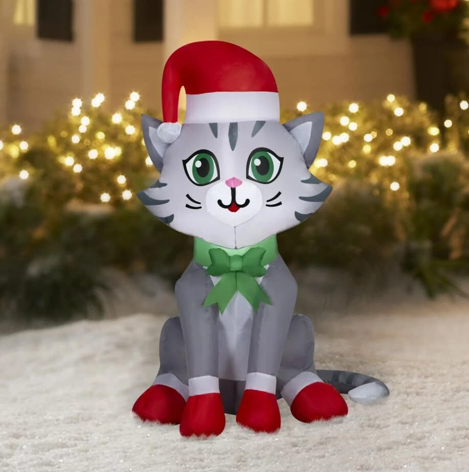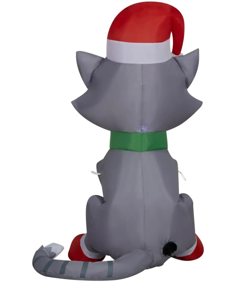Christmas Inflatable Tabby Cat with Santa Hat 3.5 Foot Kitten LED Holiday Out...