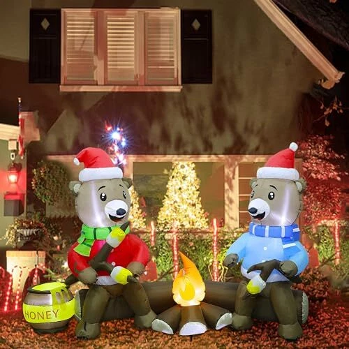30 Days Return Policy Fast Delivery Trusted seller Christmas Inflatable Decorations, 7FT Blowup Lighted Xmas Inflatable for Yard Front Door Outdoor Indoor Decor Product Description ALL IN ONE SET: Package includes un-inflated item with power adapter and blower*1, 3.3FT tie strings*4, plastic stakes*8, manual*1, and green drawstring bag*1. The inflated length is 7ft. As ONLY the polyester fabric cloth is waterproof, please keep the blower and adapter from rain or water. 7FT GIANT CRHISTMAS INFLATALE: blow up Christmas yard decoration features 2 brown bears wearing red Santa hats and sitting on the log and roasting marshmallows over a campfire, who are spending and celebrating Christmas in their own way. The scene is full of romantic fairy-tale touch. APPEALING NIGHT LIGHT: T are 4 bright built-in white LED lights making the inflatable great vivid and appealing at night, and it would definitely impress your neighbors and passersby. Just leave it lighted for night viewing and accompanying you on a whole Christmas holiday and winter season. STAND WELL & EASY STORAGE: Zip it up firstly, and once plugged in, the built-in fan will help the inflatable in a really short time. Included 8 stakes and 4 tie strings help it better stand on the ground without worrying about being blown away with the wind. It comes with a drawstring bag, with which the inflatable can be easily packed for storage. FASCINATING CHRISTMAS DECOR: giant Christmas inflatable is great attractive standing indoors or outdoors, and is great ideal to be placed at yard, garden, patio, lawns, and other places you like to welcome the coming of winter and bring great Christmas touch to your area. Shipping Returns Payment Shipping Shipping is FREE to all addresses other than APO/PO boxes in the lower 48 states. All our stock ships from US-based warehouses. Shipped via USPS or UPS (depending on location and package weight) Unless stated otherwise, all orders will ship within 24-72 hours of your payment being processed. Check our feedback to see the great reviews of FAST shipping we offer. Returns As our valued customer, we will do our best to make sure the product you receive arrives to you on time and as expected. If you are not satisfied with your purchase, please contact us within 30 days of receiving your order to process a return. Payment We currently accept payment via eBay managed payments only. Once payment is cleared, we will dispatch your shipment within 1-3 business days. Please refer to the "Shipping" tab for more information regarding shipping speed to your destination.