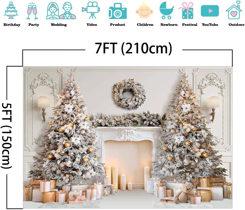 SIZE: 7x5ft/210cm Wide x 150cm High; this christmas photo backdrop will be a hit for your special event MATERIAL: This backdrop is made of cotton material; It’s very suitable for your party decoration or photography backdrop WHAT YOU GET: 1 pc christmas backdrop without the pocket. Please note that the stands and clips are not included WIDELY USED: This white christmas backdrop is perfectly used as photoshoot or cake table banner or photo studio photography or wall decor or video decorations REMOVE WRINKLES: Firstly, prepare a steam iron and a towel. Then, put down the towel to act as a buffer between the iron and the backdrop backside. Use the steam option, going section by section over the creases, making sure not to leave the iron on any one single spot for too long. Finally, roll it up for the night. Product Description Classic Christmas Interior Room Photography Backdrop The video showcases the product in use. The video guides you through product setup. The video compares multiple products. The video shows the product being unpacked. APPLICABLE SCENE How to choose the size? 7x5ft=84x60 inch=210cm Wide x 150cm High (Perfect for kids or selfie photoshoot!) 8x6ft=96x72 inch=240cm Wide x 180cm High (Great for couples or friends photoshoot!) 10x8ft=120x96 inch=300cm Wide x 250cm High (Awesome for family photoshoot!) How to remove wrinkles? Firstly, prepare a steam iron and a tower. Then, put down the tower to act as a buffer between the iron and the backdrop backside. Next, use the steam option, going section by section over the creases, making sure not to leave the iron on any one single spot for too long. Finally, roll it up for the night. It will be wonderful for your christmas photoshoot! AWESOME CHRISTMAS BACKDROPS FOR PHOTOSHOOT DON'T MISS THESE BEAUTIFUL WINTER BACKDROPS Christmas Backdrop Add to Cart Add to Cart Add to Cart Add to Cart Add to Cart Add to Cart Add to Cart Customer Reviews 4.2 out of 5 stars 69 4.4 out of 5 stars 28 5.0 out of 5 stars 2 4.5 out of 5 stars 8 4.4 out of 5 stars 39 4.5 out of 5 stars 25 5.0 out of 5 stars 2 Price $16.99 $ 16 . 99 $13.99 $ 13 . 99 $13.99 $ 13 . 99 $13.99 $ 13 . 99 $13.99 $ 13 . 99 $13.99 $ 13 . 99 $16.99 $ 16 . 99 Material Cotton Cotton Cotton Cotton Cotton Cotton Cotton size 7x5ft 7x5ft 7x5ft 7x5ft 7x5ft 7x5ft 7x5ft Wash ✔ ✔ ✔ ✔ ✔ ✔ ✔ Iron ✔ ✔ ✔ ✔ ✔ ✔ ✔ Occasion type Christmas Christmas Christmas Christmas Christmas Christmas Christmas