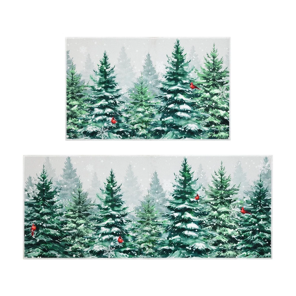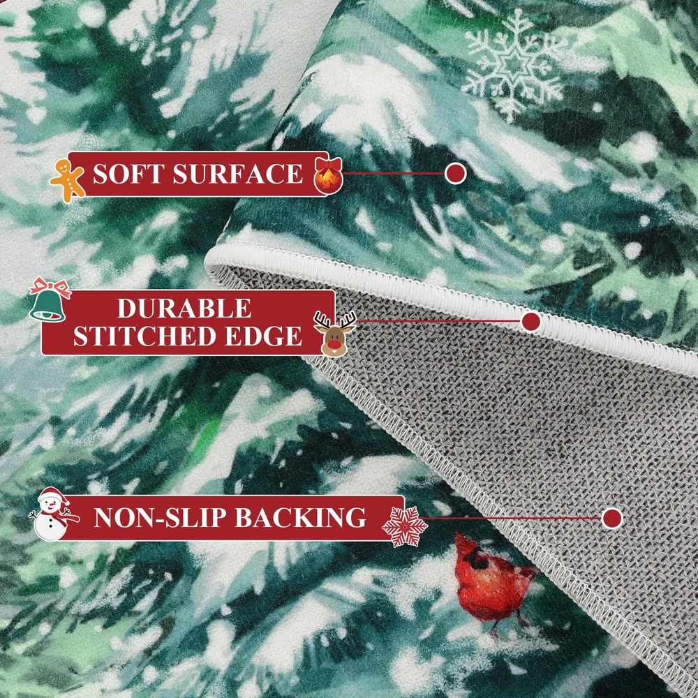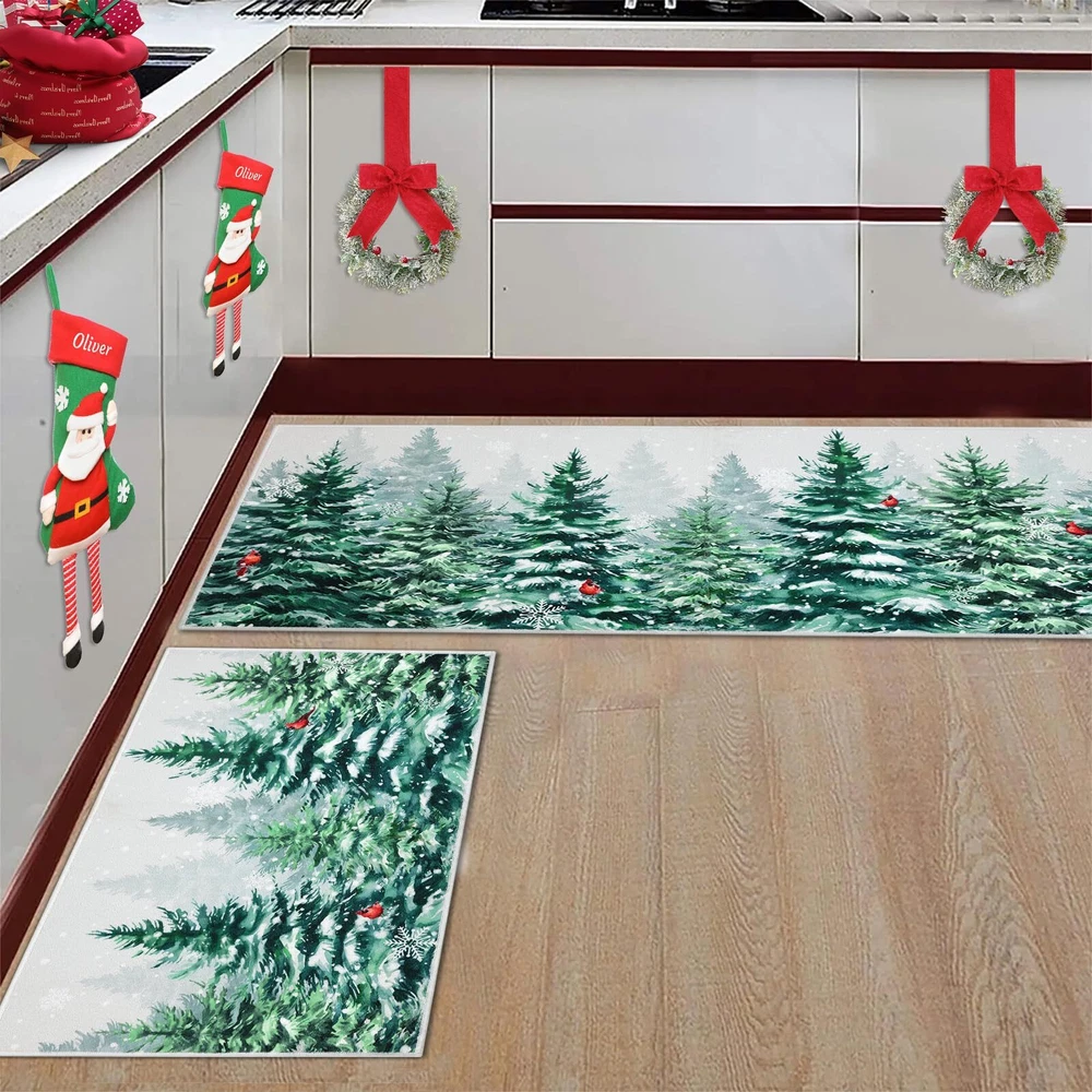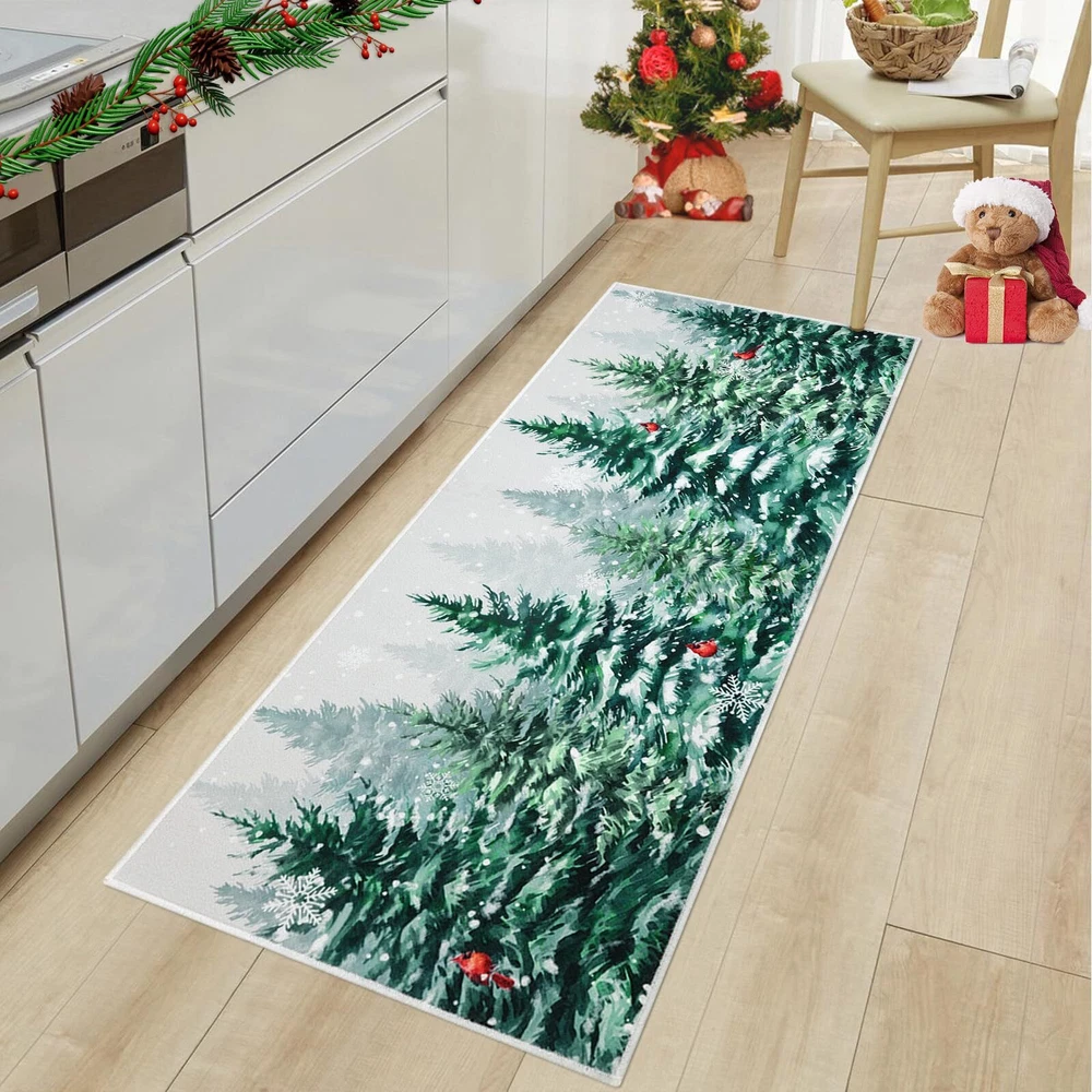Perfect Size & Flat - Measuring 20x32+20x48inch, our Christmas kitchen rugs fits perfectly in front of your kitchen or entrance. Featuring a 0.2-inch slim profile, our kitchen mat is flat with no sides curling up, This kitchen carpet is perfect for any place in your house Christmas Theme Design - Our winter Christmas kitchen rugs design - snowflake and Xmas pine tree, which will help you increase the festive atmosphere, nice and beautiful festive decorations for home kitchen indoor and outdoor Durable and Non-Slip - Backed with non-slip recycled TP rubber and topped with polyester that is low-profile to reduce chances of tripping, high-quality durable construction that is stain resistant Easy to Care - Our washable Christmas rugs make maintenance easy. Vacuum cleaners can be used regularly for daily cleaning to prevent dust and debris from entering the fibers. You can also use a washing machine and dryer or hand wash for deep cleaning Multiple Uses - Make your kitchen more stylish and comfortable with these durable, unique, seasonal kitchen mats. Add a pop of color in the entryway and protect your floors too. Perfect for any kitchen, deck, patio, porch, veranda, bathroom, laundry room and entryway