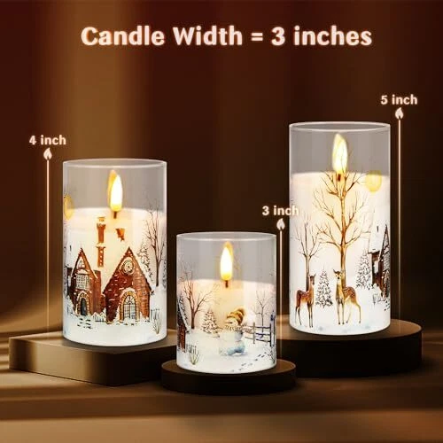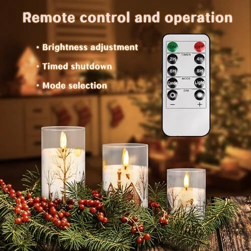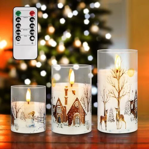 30 Days Return Policy Fast Delivery Trusted seller Christmas LED Glass Flameless Candles with Remote and Timer, Real Wax Battery Operated Candles Warm Color Flickering Light for Festival Home Party Decor(Pack of 3)-White Product Description CHRISTMAS DECALS DESIGN -This beautiful christmas sticker candle is made up of cute snowmen, elk, and a warm home.Create festival and cozy atmosp, ideal for Christmas party and winter decoration.and more importantly, the additional candle mode will randomly change the brightness, and the realistic flame technology creates a real and realistic visual effect flame. THE PERFECT CHRISTMAS DECORATING -These impressive candles require 3AAA batteries(not included) per candle, that are expected to last for about 150 hours, while the of the led lamps is up to 50,000 hours. This decorative Christmas tree candle is very nice addition to mantelpiece, fireplace, window sill, wall sconce, christmas tree around,add sweet and romantic ambiance to your winter decoration. REMOTE CONTROL FUNCTION -You can control these candles remotely when they are placed somew difficult to touch. Set a 2H/4H/6H/8H timers will save your trouble to turn them on/off because they will come back on automatically at the same time every day. Also, you can adjust the light modes(flicker/steady glow) and brightness level as you want. SAFE TO USE -These flameless candles can be used without having to worry of flame, no fire hazards or burning risks, safe for families with child or pet. With amazing flameless candle set you can have perfect ambient evenings with peace of mind. WONDERFUL CHRISTMAS GIFT CHOICE -You will receive 3 flickering candles(D3"x H4"5"6") and 1 remote control. A wonderful gift to express your love and concern to your family, lover, friends, and teacher. Especially on birthdays, anniversaries, Christmas, weddings, and other meaningful day. Shipping Returns Payment Shipping Shipping is FREE to all addresses other than APO/PO boxes in the lower 48 states. All our stock ships from US-based warehouses. Shipped via USPS or UPS (depending on location and package weight) Unless stated otherwise, all orders will ship within 24-72 hours of your payment being processed. Check our feedback to see the great reviews of FAST shipping we offer. Returns As our valued customer, we will do our best to make sure the product you receive arrives to you on time and as expected. If you are not satisfied with your purchase, please contact us within 30 days of receiving your order to process a return. Payment We currently accept payment via eBay managed payments only. Once payment is cleared, we will dispatch your shipment within 1-3 business days. Please refer to the "Shipping" tab for more information regarding shipping speed to your destination.