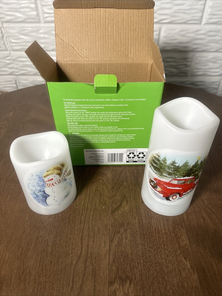 Add a festive touch to your home decor with this Holiday Time White LED Pillar Candle. The candle comes with a car and snowman decal that will make it seem like a real pillar candle with a holiday scent. This set includes two pillar candles, perfect for creating a warm and inviting atmosphere in any room. The candles are made by Holiday Time and are designed for indoor use. They are battery-operated and easy to use, making them a great addition to any holiday decor. These pillar candles are perfect for creating a cozy and festive atmosphere in your home during the holiday season.