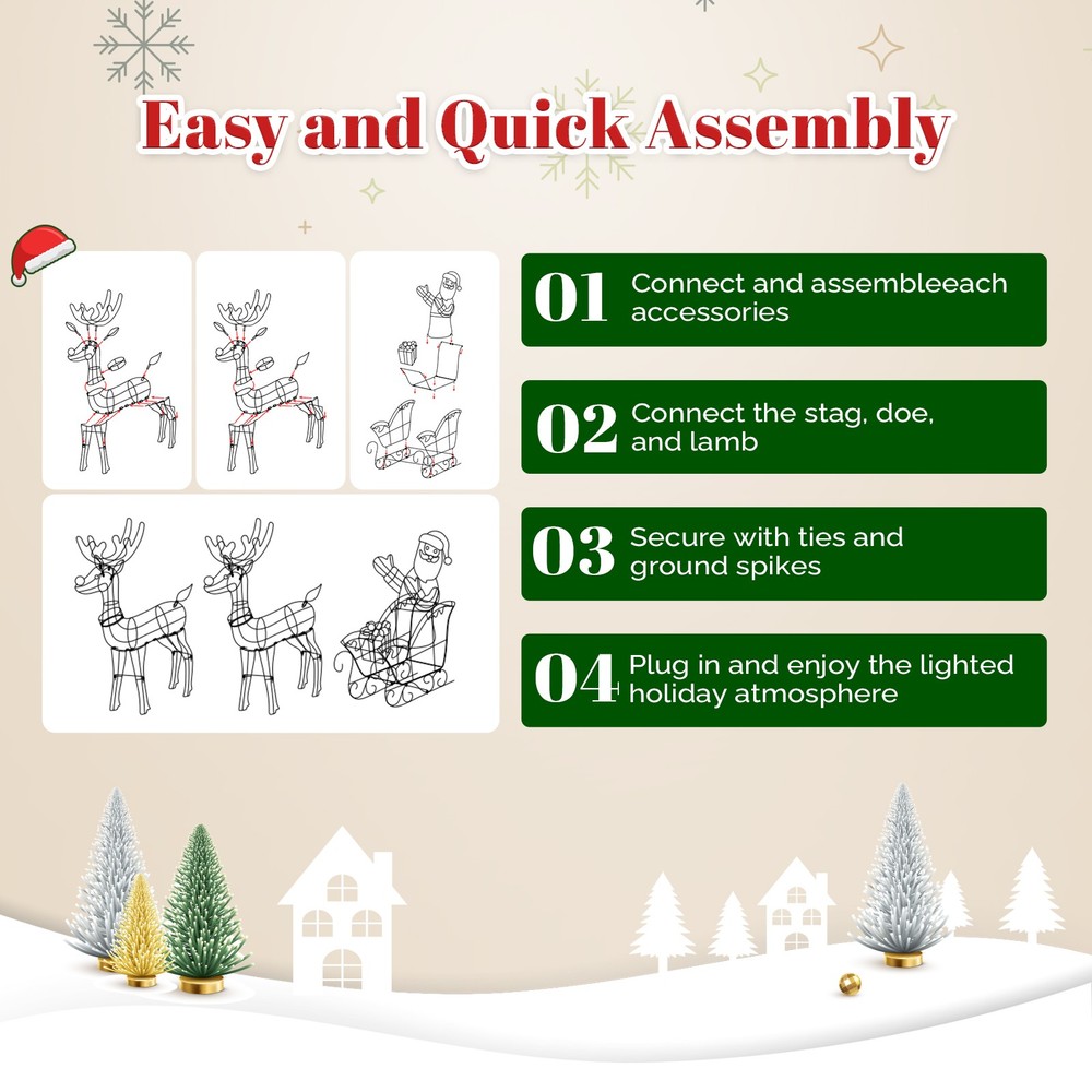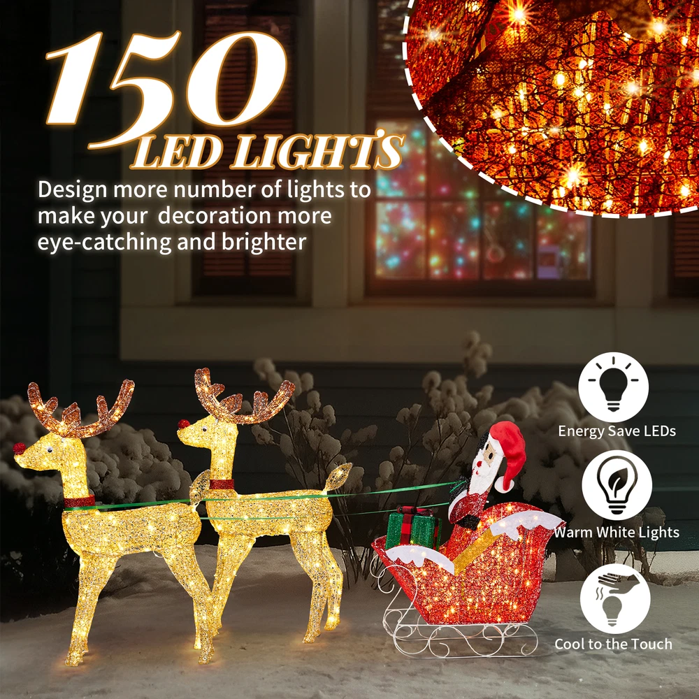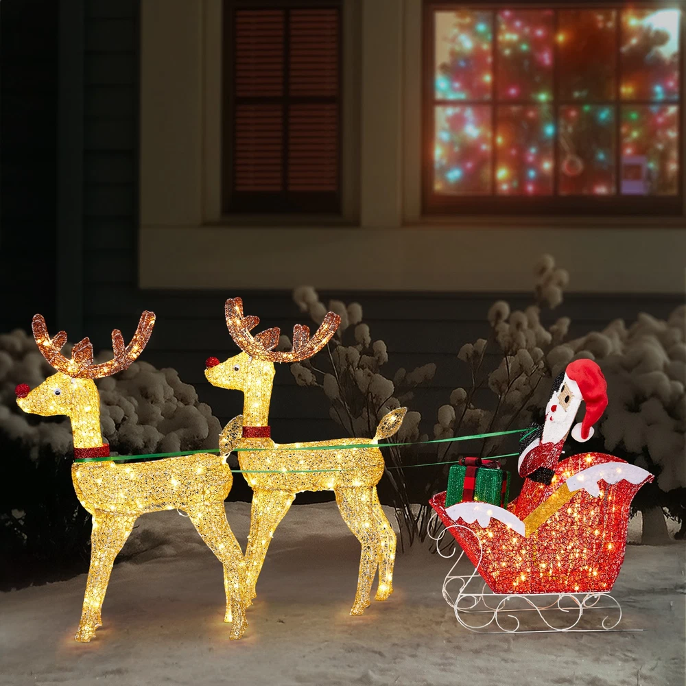 Outdoor 71in Christmas Lighted Deer Pulling Old Man Splicing Lawn Decoration