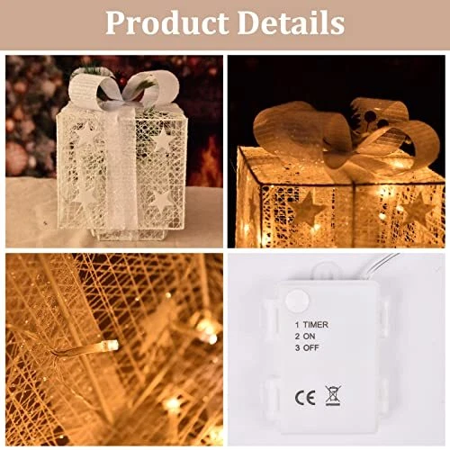 30 Days Return Policy Fast Delivery Trusted seller Christmas Lighted Gift Boxes, Set of 3 Christmas Decorations for Home, Light up Christmas Ornaments, Warm White LED with Bows for Indoor Party Holiday, Christmas Decor(Star) Product Description Unique Design: Cute star pattern with white bows design makes the Christmas lighted gift boxes look premium and exquisite. When you light it, christmas decorations indoor will be warm and charming. Timer Function: Each gift box has a high quality string light. The string light has two modes: constant light and twinkle. After timing, it stays bright for 6 hours and then goes out for 18 hours. Waterproof: IP44 Waterproof and battery case need to be equipped with 3 AA batteries (not included). Note: But avoid immersing the battery case in water for a long time when using outdoor. Easy Storage: Their sizes allow them be overlapped one by one for facilitate storage, carry and space-saving. Christmas decor boxes goes well with most decor style and is a fabulous addition to Christmas party celebration or christmas decorations outdoor yard. Christmas decorations: Christmas decor boxes go well with most decor style and is a fabulous addition to Christmas party celebration or Christmas decorations outdoor yard. Shipping Returns Payment Shipping Shipping is FREE to all addresses other than APO/PO boxes in the lower 48 states. All our stock ships from US-based warehouses. Shipped via USPS or UPS (depending on location and package weight) Unless stated otherwise, all orders will ship within 24-72 hours of your payment being processed. Check our feedback to see the great reviews of FAST shipping we offer. Returns As our valued customer, we will do our best to make sure the product you receive arrives to you on time and as expected. If you are not satisfied with your purchase, please contact us within 30 days of receiving your order to process a return. Payment We currently accept payment via eBay managed payments only. Once payment is cleared, we will dispatch your shipment within 1-3 business days. Please refer to the "Shipping" tab for more information regarding shipping speed to your destination.