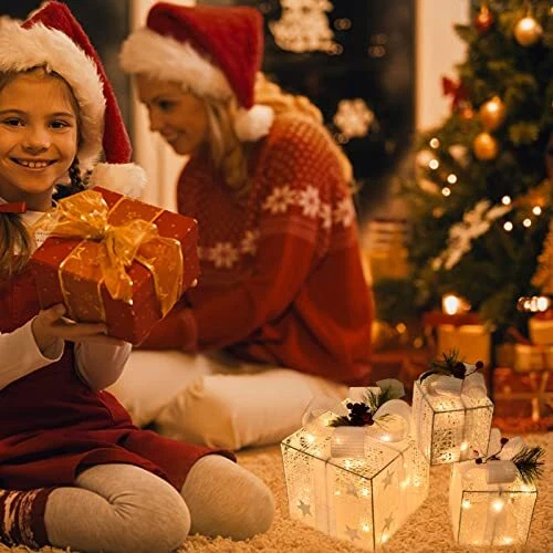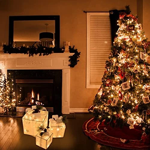 Christmas Lighted Gift Boxes, Set of 3 Christmas Decorations for Home, star