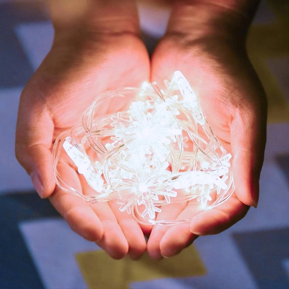 Christmas Lights, 20 Ft 40 LED Snowflake String Lights Battery Operated Waterpro