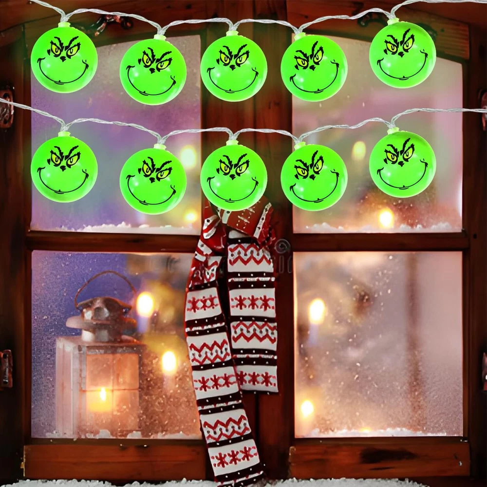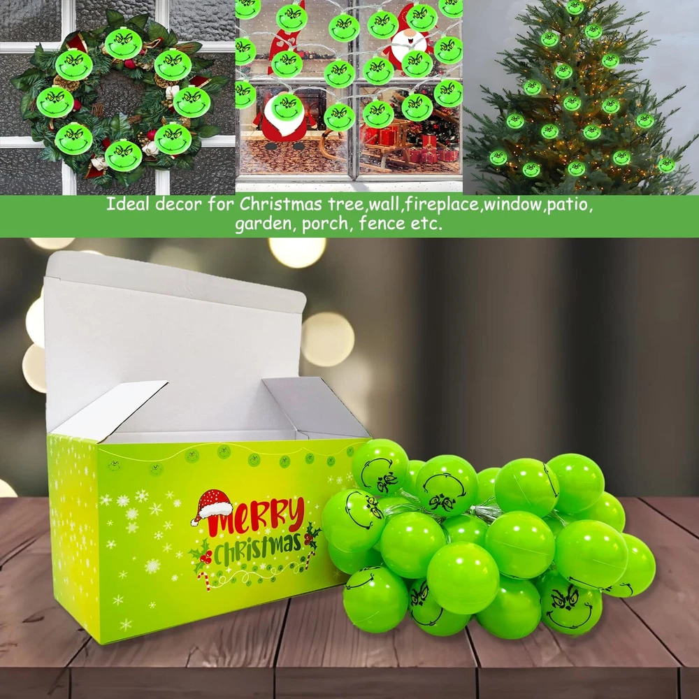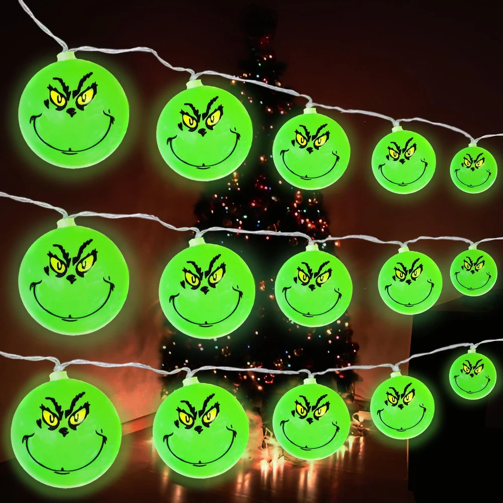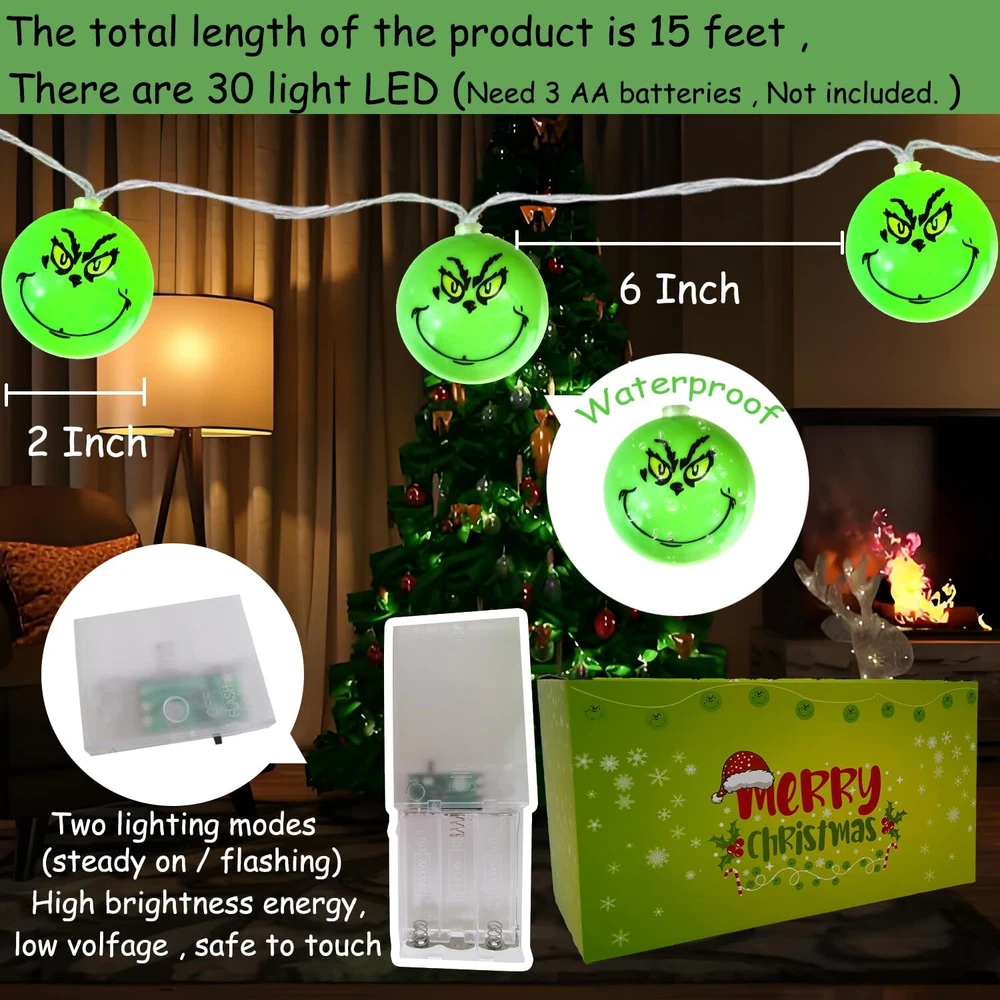 30 LED lights and string length is 15 feet Unique Christmas Lights: These Christmas string light features with classical faces with 3D design, Christmas light with 30 LED lights and a length of 15 feet, perfect for outdoor and indoor decorations, soft warm LED lights add fun and festive feeling, bring a strong warm festive atmosphere to your home. Sturdy and easy to use: These Christmas light for tree are made of high-quality plastic material, exquisite,sturdy and reusable,not easy to break,no assembly required. The Christmas string lights can be bent to any shape you want. Long enough for you to hang them to your Christmas trees or anywhere you want. Battery Operated Christmas Lights: Powered by 3 x AA batteries(not included), no plug needed, low voltage and safe to touch,with two lighting modes. Choose between steady on or flashing modes to suit your preferences. These Christmas with lights will stand up to most weather conditions, but the battery box are not, please prevent the battery box from rain. Great Christmas gift ideas: The light will shine brightly through the Christmas lanterns for unique winter decor, bringing a unique warm and cozy atmosphere to your family. This Christmas lights string is a nice Christmas gift idea for your child, friends, family or colleagues,especially for fun. Wide Application: This Christmas string lights are perfect for Christmas decoration, ideal decor for Christmas tree, wall, fireplace, window, patio, garden, porch, fence etc. Best choice for Christmas, birthday, party, wedding, garden and more occasions. Simply set them up and bring that bright and artistic feel to your indoor or outdoor spaces.