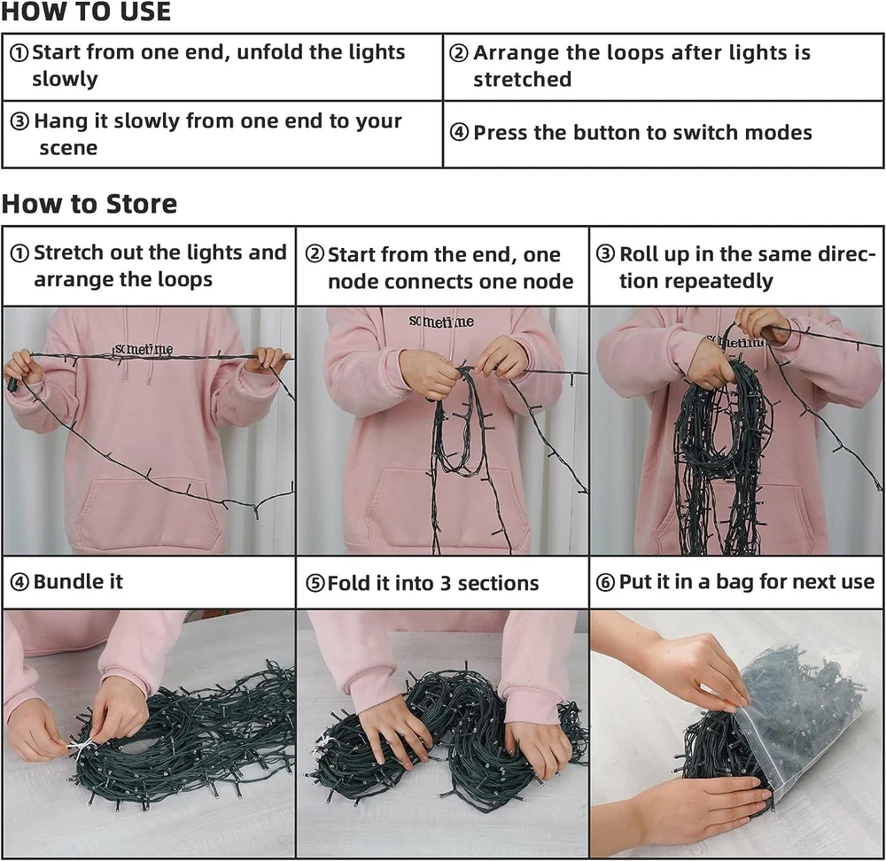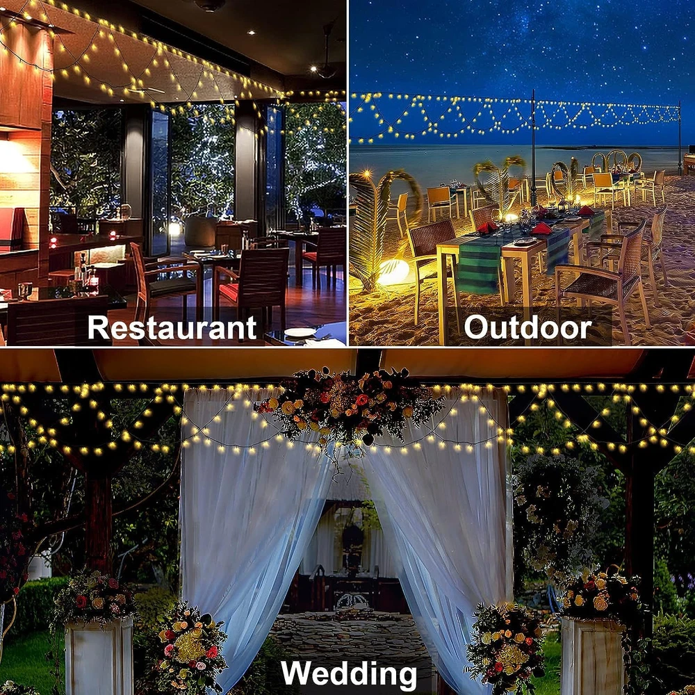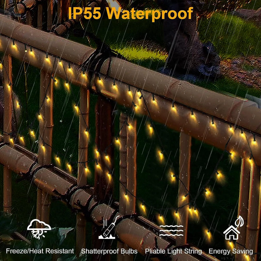 đ ă8 Modes & Memory FunctionăThe christmas Half-round Lights has 8 lighting modes for you to choose, Waterproof christmas lights outdoor features 8 lighting modes, includes Combination, In waves, Sequential, Slow Glow, Chasing/Flash, Slow fade, Twinkle/Flash, Steady on. In addition, with a built-in memory chip, which can save your last lighting modes, no need to reset every day! đ ăExtendableăChristmas lights outdoor decorations have 380 pieces LED, 19 semicircles, 40 feet total length Christmas lights outdoor. Each Christmas string lights outdoor has end-to-end connection that allows up to 3 light strings connected together to illuminate a wider range. đ ăIP55 Waterproofăchristmas decorations indoor lights are IP55 waterproof, which is very perfect for outdoor decor and can work normally even in cold winter. Please keep the plug away from the water. The output voltage is 30V, safe and energy saving. đ ăUL Certified LightsăThe Christmas String Lights with all of USA standard outlet, Strictly tested and meets the US requirements of string lights UL safety standards to ensure & maximize the safety. đ ăPortable & Widely UsedăThe commercial outdoor led lights has easy and great decor for christmas indoor and outdoor decorations, such as, Holiday Party, Halloween, Christmas party, Thanksgiving day, Wedding, Valentine's Day, Restaurant, Hotel, Indoor and Outdoor Yard Garden... đ ăWorry-free PurchaseăWe know the world is full of choices. Thank you for choosing us! We support the durability of our Christmas lights indoor outside. We provide you with 12 hours of . If the string lights you purchased do not light up, please feel free to us. We will be happy to provide support.