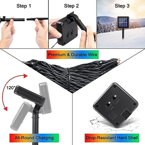 Return Policy Fast Delivery Trusted seller Multicolor Christmas Lights Outdoor, 440LED Solar Christmas Lights Outdoor Waterproof for Christmas Decorations Outdoor, Each 78FT Christmas Solar String Lights for Outside, Christmas Decor Tree 2Pack Product Description Christmas Decorations Outdoor: Each solar string lights has upgraded led-220 Pcs LED than other similar christmas lights with longer size-Total 78FT, meeting your enough outdoor christmas decor demand. Christmas lights outdoor produce a multicolor gorgeous glow for house, tree, garden, patio, fence, pathway, yard decor and for party, christmas decorations. Christmas String Lights: High-efficiency solar panel & high-capacity battery to ensure safety while lighting all night for christmas decorations outdoor. Continuous rainy, cloudy or snowy days will cause christmas solar lights in low brightness or not lighting. Don't worry, please put them under enough sunlight and make them fully charged. 8 Lighting Modes Fairy Lights: Outdoor string lights have 8 lighting modes by pressing the mode button: combination, in wave, sequential, slow glow, chg, slow fade, twinkle, and steady on to fit different outside christmas decorations. Different flashing mode, different mood, the same enjoyment! Solar Christmas Lights Outdoor Waterproof: Solar christmas lights are solid and waterproof to withstand most weather, no matter rainy or snowy. All LED bulbs are filled with hot melt adhesive layers, the anti-freezing and anti-oxidation performance will ensure a longer service life. It is a perfect fairy lights choice for christmas decor outdoor. String Lights Customer Service: provide 365 days outdoor christmas lights replacement policy for any quality problems-broken string lights/lack of accessories, ect. If you have any questions about christmas lights solar powered, please don't hesitate to contact us by amazon, and we will reply and offer a satisfied solution for you in 24 hours. Shipping Returns Payment Shipping Shipping is FREE to all addresses other than APO/PO boxes in the lower 48 states. All our stock ships from US-based warehouses. Shipped via USPS or UPS (depending on location and package weight) Unless stated otherwise, all orders will ship within 24-72 hours of your payment being processed. Check our feedback to see the great reviews of FAST shipping we offer. Returns Seller does not accept returns Payment We currently accept payment via eBay managed payments only. Once payment is cleared, we will dispatch your shipment within 1-3 business days. Please refer to the "Shipping" tab for more information regarding shipping speed to your destination.