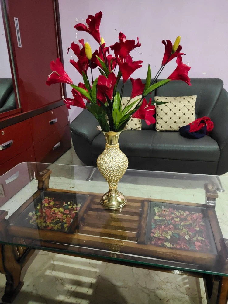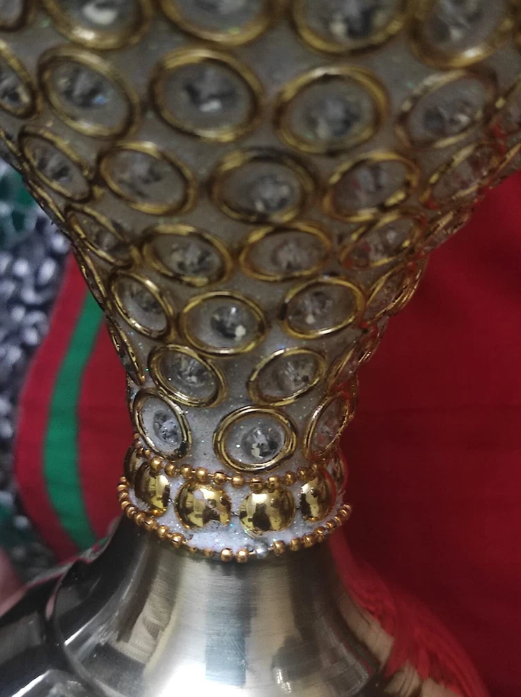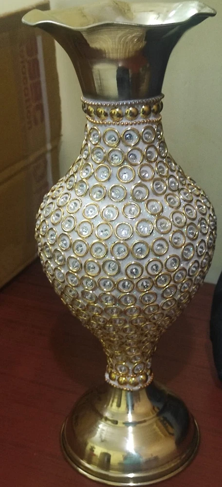 Material Metal Colour GOLD Product Dimensions 30.5L x 15W x 15H Centimeters Shape Hand About this item Material:Brass, Color: Golden Package Contents: 1 Vase Size-14 inch(appx.) Best for home decor This beautiful Guldasta pot for artificial flowers will looks great in your dining room, bedroom, centre table, drawing room or any place of your choice.