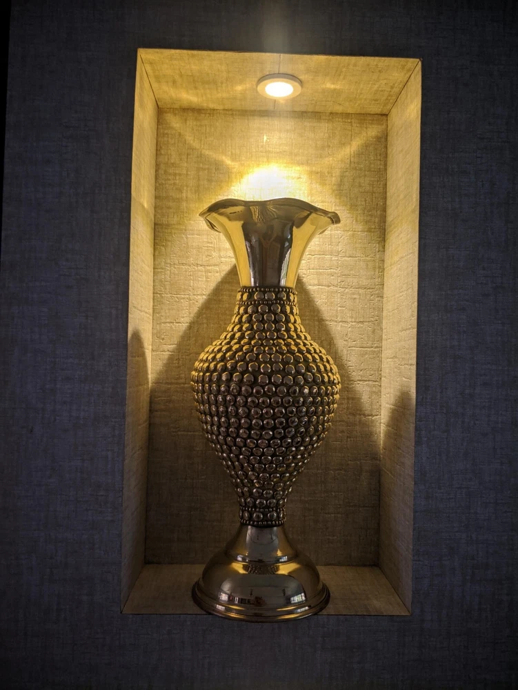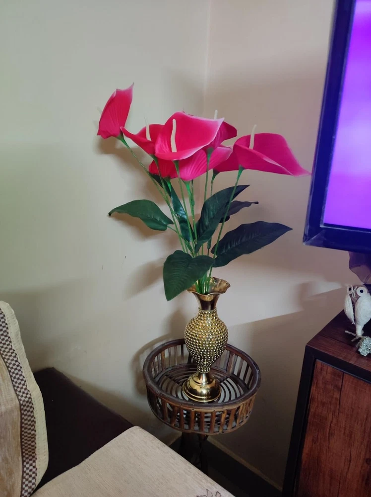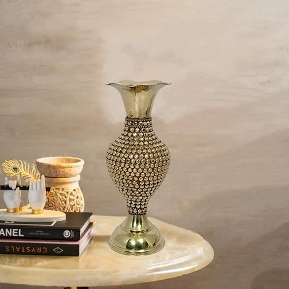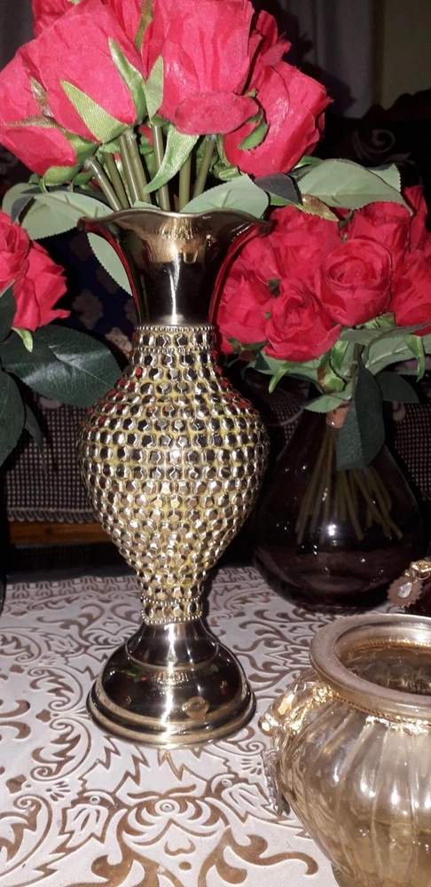 Material Metal Colour GOLD Product Dimensions 30.5L x 15W x 15H Centimeters Shape Hand About this item Material:Brass, Color: Golden Package Contents: 1 Vase Size-14 inch(appx.) Best for home decor This beautiful Guldasta pot for artificial flowers will looks great in your dining room, bedroom, centre table, drawing room or any place of your choice.