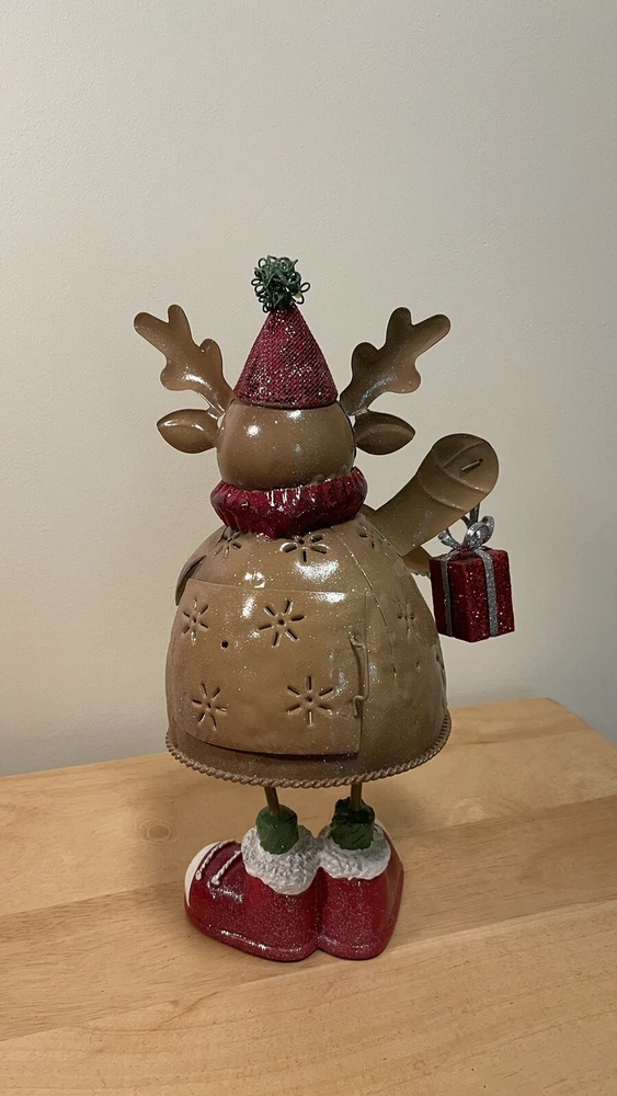 Infuse your home with holiday magic with this exquisite Christmas Metal Reindeer Votive Candle Holder. Perfect for creating a cozy and warm ambiance during your festive celebrations, this beautifully crafted piece is made from light weight metal and painted with intricate details. Featuring a charming reindeer design in rich brown, festive red, and vibrant green, it's a stunning addition to any Christmas decor. Whether you're hosting a holiday dinner party or enjoying a quiet night in, this votive candle holder will add a touch of elegance and warmth to your space. Make your home feel inviting and festive with this delightful holiday decor piece.