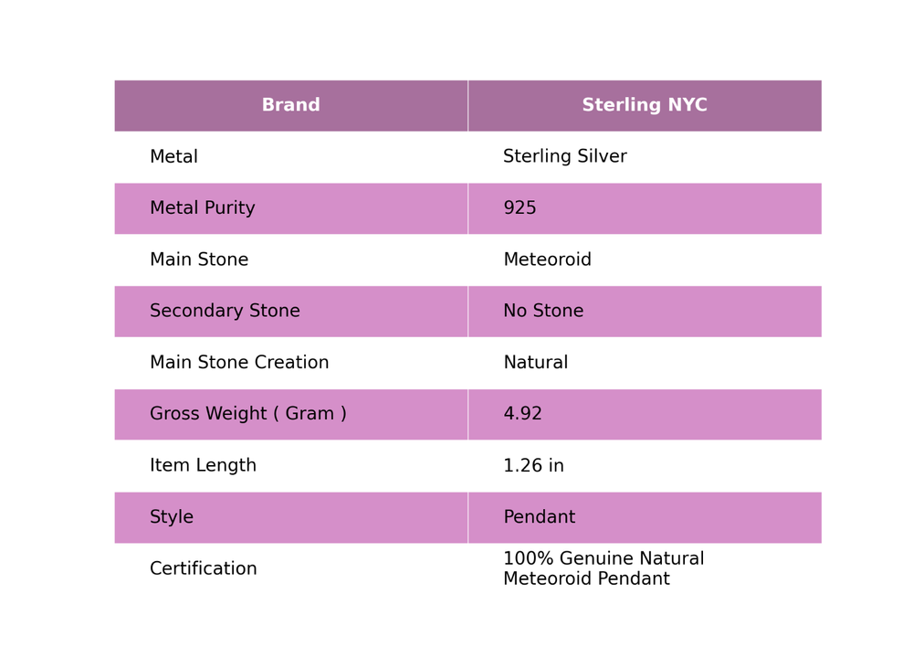 Welcome to Sterling NYC Gift For Women Jewelry Pendant 925 Sterling Silver Natural Meteoroid Gemstone Handmade Pendant, Sterling Silver Pendant, Meteoroid Pendant, Handcrafted Pendant This stunning pendant is a one-of-a-kind piece of jewelry that will make a great addition to any collection. Crafted from high-quality materials and designed with exquisite attention to detail, this pendant is perfect for any occasion. The unique design and eye-catching beauty of this pendant make it an ideal gift for a loved one or a special treat for yourself. Specifications:- SKU : JS-24247 Gemstone : Meteoroid Stone Shape : As Seen In Picture Metal Purity : 925 Sterling Silver Length : 1.26 Inches Width : Inches ----------------------------------------------------------------------------------------------------- Experience the timeless allure of silver jewelry, a cherished choice known for its exceptional properties and countless rewards. Explore the captivating charm of its unique attributes, enveloping you with elegance and remarkable healing qualities. Immerse yourself in the enigmatic world of silver, where beauty and benefits harmoniously intertwine. Benefits: Embrace the Elegance : Silver jewelry seamlessly blends accessible luxury with timeless beauty, elevating any jewelry collection without the need for extravagant spending. A Mindful Companion : Adorn yourself with silver jewelry as a gentle nudge towards mindfulness, a tangible reminder to cherish the beauty of every moment. Amplify Positivity : Silver, known for its energy-conducting qualities, is thought to enhance the power of positive intentions and affirmations, aiding in the clear manifestation of your desires. Unleash Self-Expression : Silver jewelry, with its versatile designs, empowers individuals to express their unique style, allowing their personality to shine through every piece. Soothing Serenity : Silver's cooling properties are believed to have a therapeutic effect, bestowing a sense of relief and tranquility upon both body and mind. ----------------------------------------------------------------------------------------------------- For Mother's Day Gift For Father's Day Gift For Promise For Valentine' Day For Halloween Party For Christmas Day Gift For New Year Party For Mom For Her ----------------------------------------------------------------------------------------------------- Discover the impeccable designs tailored just for you, and receive personalized guidance by reaching out to us. Our skilled artisans meticulously handcraft each piece in our workshop, infusing them with love and unwavering attention to detail. Your visit holds immense significance to us, and we are committed to ensuring that your shopping experience is nothing short of exceptional. Thank you for choosing us; we sincerely hope you thoroughly enjoy your shopping journey. Happy shopping! ----------------------------------------------------------------------------------------------------- At SterlingNYC, exquisite craftsmanship meets premium sterling silver gemstone jewelry. Our handcrafted pieces reflect authenticity and uniqueness, a testament to our commitment to excellence. Explore our collection and create your own dazzling jewelry ensemble.