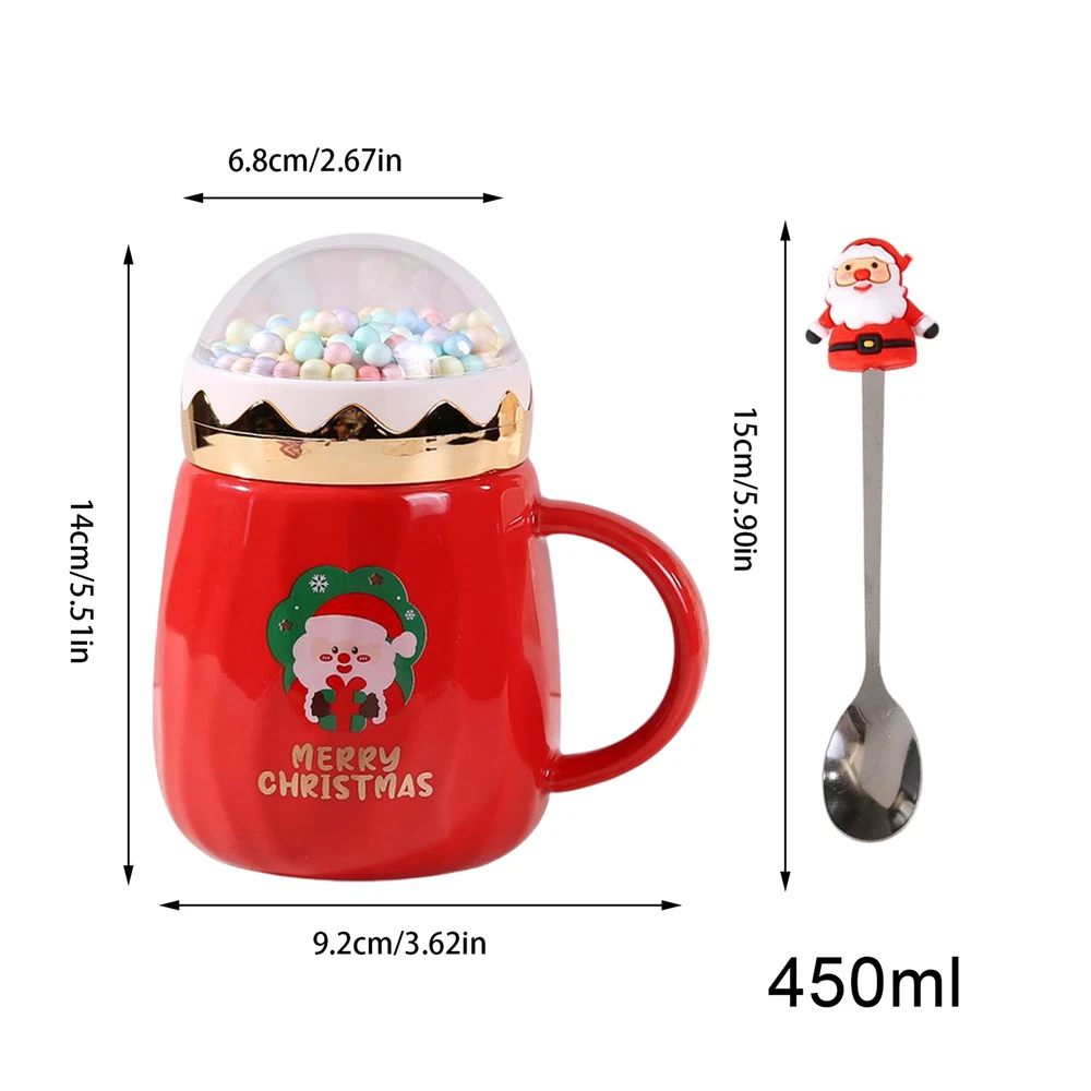 Bullet Points: Safe Material: Our Christmas Coffee Mug boasts high-quality material with high-temperature resistance, providing you with a comfortably hot sip every time. Its durability and longevity ensure long-lasting use Unique design: Featuring a unique Christmas theme design with rich and interesting details, this mug includes a cute colorful bubble cup lid, making it perfect for festive celebrations Ergonomic Handle: Enhance the festive vibe with our Christmas mugs' easy-to-hold, ergonomic round handle that ensures a secure grip and avoids any potential burns Versatile Use: Suitable for use as a coffee or tea cup, it's perfect for both home and workplace. Widely applicable, it adds an interesting touch to any drink Practical Present: Add more style to any beach excursion with this practical and fashionable Christmas Coffee Mug. Perfect as a birthday or holiday present for family and friends These mugs feature a unique holiday design that's sure to impress. Made with high temperature resistance and an ergonomic design, our mugs are the perfect choice for coffee or tea lovers. Specification: Material: Ceramic Product size: about 14x9.2x6.8cm/5.51x3.62x2.68 inches Weight: 580g Capacity: 450ml Spoon Length: about 15cm/5.91 inches Product List: 1* Christmas Coffee Mug 1* Spoon Notes: Due to the lighting effects and filming angles, there is a color difference in the product, please understand. Due to manual measurement, there is a tolerance in the product size. The actual product shall prevail, thank you!