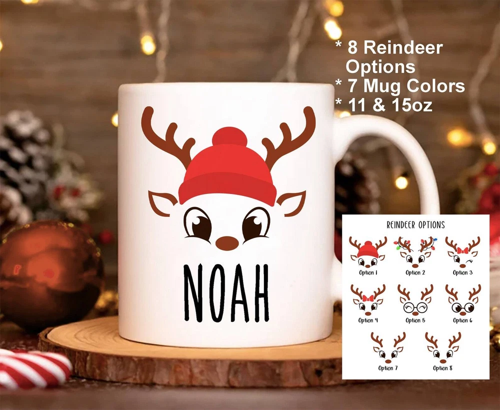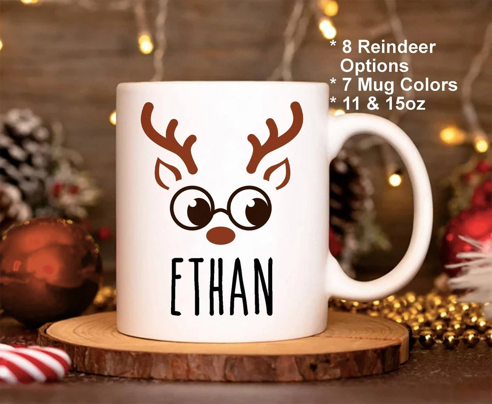 Christmas Mug Personalized Christmas Mug For Kids Reindeer Mug Kids Hot Chocolate Mug Childrens Hot Cocoa Mug Secret Santa Gift Product Details.. This high quality 11oz. ceramic white mug has a premium hard coat that provides crisp and vibrant color reproduction sure to last for years. Perfect for all hot & cold beverages. The highest quality printing possible is used. It will never fade no matter how many times you wash it. Material: 100% Ceramic. Print both sides. Dishwasher and Microwave Safe. High Gloss + Premium White Finish. Printed in the U.S.A. Personalized & Custom. We support personalized and custom mug to add custom, when placing an order, you can add notes to the "order note" in shipping address section. Also you can contact us directly via message. Shipping Info. Ready to ship in 1 to 2 business days, All products are made-to-order and proudly printed in the United States. Shipped by USPS and DHL, You will receive your order in 5-7 days. Replace & Refund. All products are defective during shipping broken, chipped will be replaced free of charge. You are not satisfied with the product, we will refund 100% money to you. If any other issues arise, please do not hesitate to message, we would be more than happy to assist you.