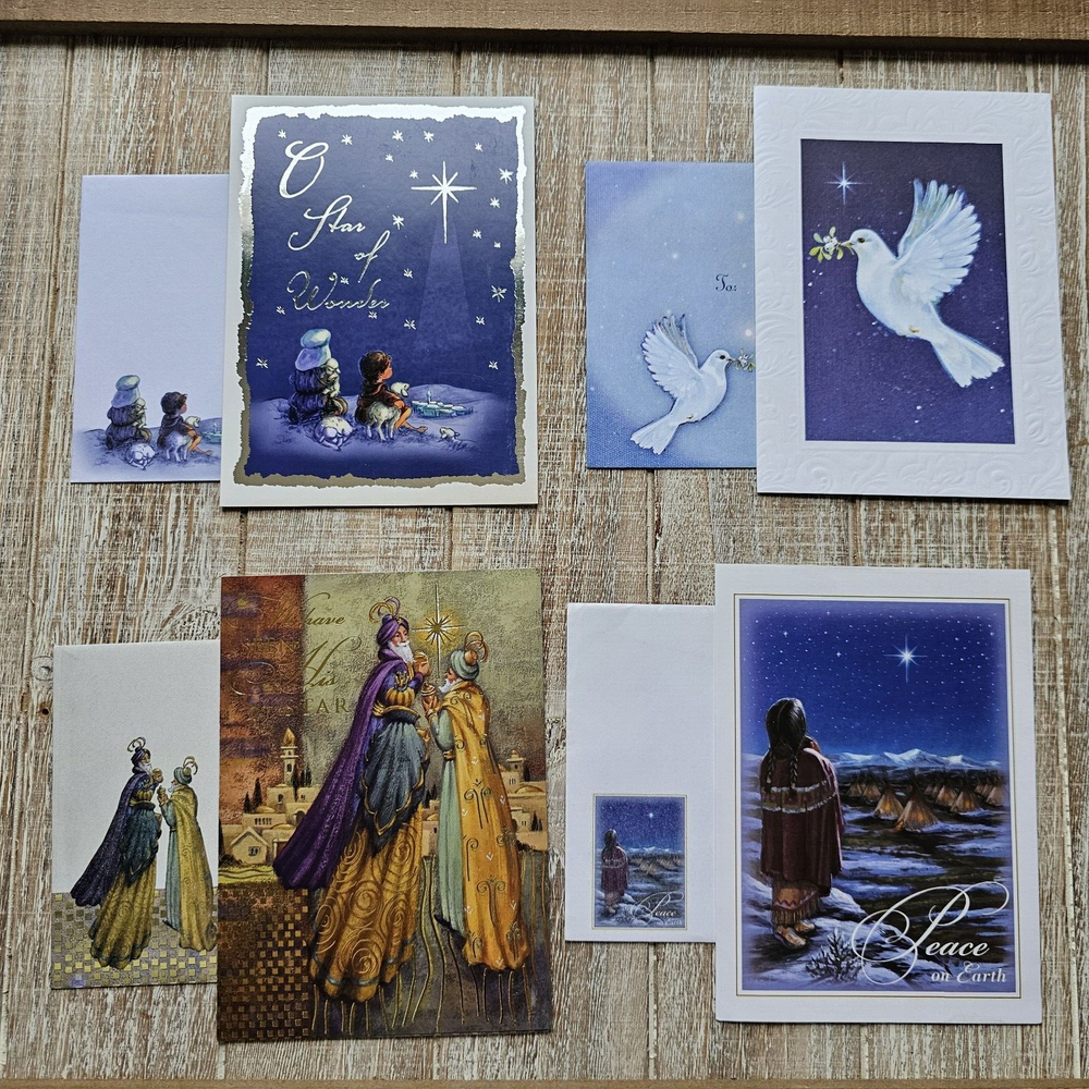 Christmas Greeting Card Lot 4 Cards Matching Envelopes Small 5x7 Nativity Star Cards are in the 5x7" range but size does vary some All have matching envelopes These are different brands and some may have come out of box sets Great for card sending projects, crafts or large card lists Condition: new old stock, have been stored and may have a bent corner or scuff on an envelope. Search thousands of cards for all occasions in our eBay Store. **This items ships with limited tracking via USPS First Class.** **The standard time is 5-7 business days for delivery but it may take up to 10 days.**