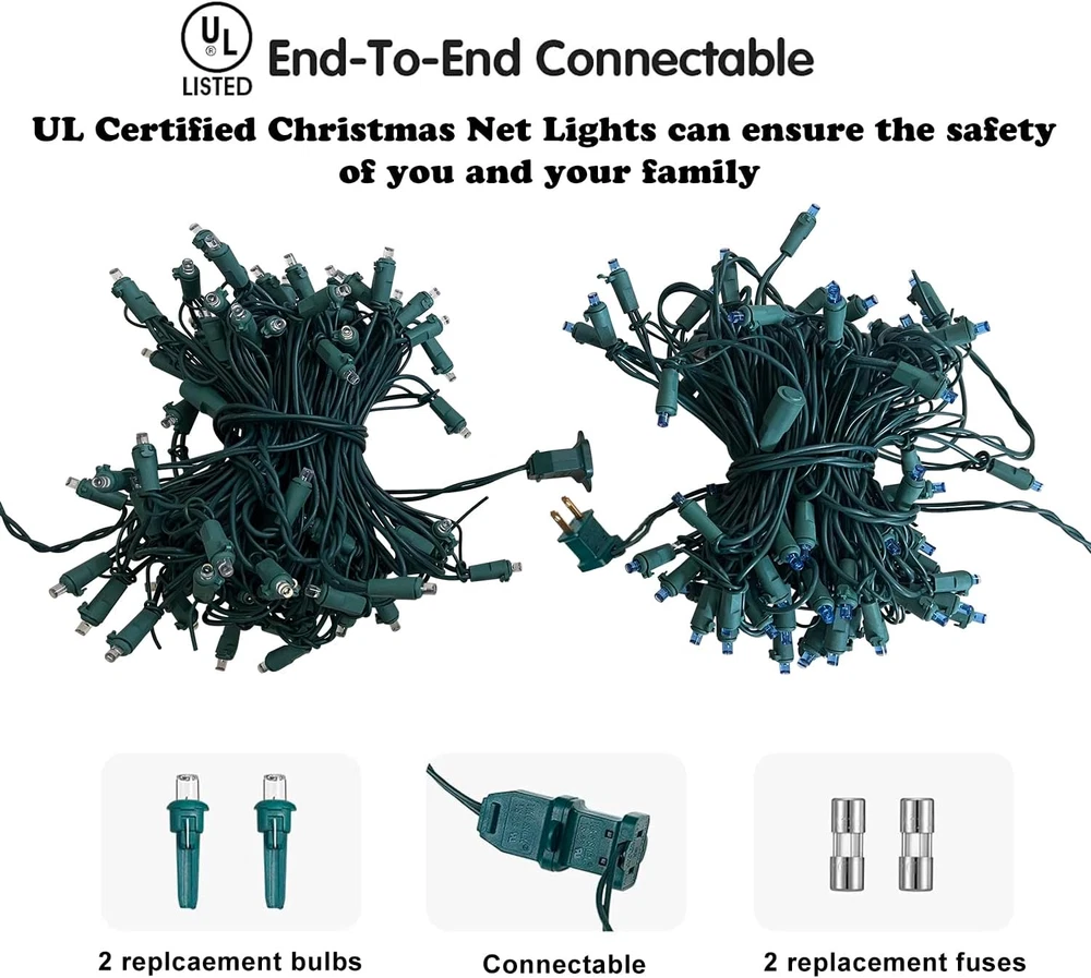 Store New Arrivals Add to Favorite View Feedback Contact Fast deliveries to the customer's home Quality customer service John Make the customers happy! Christmas Net Lights Outdoor Christmas Decorations Lights 5Ftx5Ft 100LED Green Wire, Connectable Bush Mesh Net Lights String for Christmas,St Patricks Party,Shrub,Yard,Tree (Green) Description 【Ideal Outdoor St Patricks Day Lights】Our 5ftx5ft 100led Christmas net lights string has a length of 9.84ft in front lead and 1.64ft in rear lead, perfect outdoor indoor decorations for Christmas, Thanksgiving, Easter, Halloween, party, yard, balcony, garden, pergola, gazebo, especially for trees and bushes. The green wire grid can perfectly blend with green bushes and trees, making your yard/garden look more natural during the day. 【Totally UL Certified St Patricks Day Lights】This outdoor christmas net lights Strictly tested and meets the US requirements of string lights UL safety standards.The whole christmas lights string and every part (string wire, led bulbs, output plug and all raw material) are UL certified.It has approved for indoor and outdoor christmas decorations.The christmas lights string is IP44 waterproof and can be used indoor outdoor(CAUTION:The plug is not waterproof, please keep the plug away from water). 【Durable and Sturdy Mesh Net Lights】 Our mesh net lights use the high quality and durable green wires so they are difficult to be break off. The strong construction makes it tough and sturdy, not easy to break apart and overheat after long hours of usage. They are strong enough to provide years of high quality lighting. 【Connectable St Patricks Day Net Lights】 This outdoor christmas lights string has both male/female plug,allowing you to connect max 12 sets together.You can connect lights string on different shrubs or splice them into a larger net without adding power sockets.You can connect different light strings at distance within 11.48ft,very convenient to use. 【Waterproof Outdoor St Patricks Day Decorations lights】The christmas lights string is IP44 waterproof and can be used indoor outdoor(CAUTION:The plug is not waterproof, please keep the plug away from water). 【Independent Fuse Mesh Lights】Each bulb of this bushes lights is individual, so if one or several bulbs are damaged or burnt out, the other bulbs will work normally,the entire strands of net christmas lights will stay on normally,continuing to provide you with holiday colors. We also provide 2 spare bulbs and 1 spare fuse for repair (basically no need to use). 【Widely Used Bushes and Tree Lights】The mesh and tree lights is very easy to use, unroll the net string lights then mount it at the place where you want to decorate ,suitable for terrace, indoor, outdoor, yard, garden, cafe, wedding, birthday, Christmas, Thanksgiving, Halloween, Valentine's Day, Christmas tree,etc. 【Satisfaction Guarantee】After the Christmas net lights are manufactured,we tested each function and color temperature before packaging,it will help you create a perfect holiday atmosphere.If you have any questions, please feel free to contact our after sale service team at any time, we will help you solve the problems within 24 hours. Product Description HISHINY High Brightness 100 Led Christmas Net Lights,Applicable To Various Festivals And Occasion,Both Outdoor & Indoor Use. High Quality Outdoor Christmas Net Lights String,Decorate Your Home,Enjoy Your Life Totally UL Certified: The whole net string lights has passd UL certification,including every part (string wire, led bulbs, output plug and all raw material) Dark green & enhanced design: We design this christmas net lights into dark green in order to integration with green plants.We use the high quality and durable thicker wires,they are strong enough to provide years of high quality lighting. Connectable: End to End Connect,can connect up to 12 strings,the lead wire is long enough to connact different Bushes. Waterproof: our led outdoor christmas lights are constructed with high quality material and designed to withstand rain or heat, so you can confidently leave them on display through summers and winters. Perfect for indoor & outdoor decorations without worry of rainy weather. Widely Used: Easy to use, suitable for indoor and outdoor use, can be used anywhere you want. Specifications LED Quantity 100LED Wire Color green wire Lead Wire Length 9.84feet Net Size 5ftx5ft Input Voltage 120V~60Hz,0.20A Power 9.6W Durable Durable and Sturdy outdoor Christmas net lights string! Unlike other low-voltage AC to DC bush net lights (such as 200LED, 300LED and 360LED),our enhanced design christmas net lights are sturdy enough and will not be broken by the branches of the bush. Other AC/DC low-voltage net lights: with weakly and very thin wires, they usually break apart easily when use in bushes or trees. Our Christmas net lights: We use the high quality and durable thicker green wires. The strong construction makes it tough and sturdy, not easy to break apart and overheat after long hours of usage. They are strong enough to provide years of high quality lighting. More choices in battery lights,string lights,curtain lights,net lights for Halloween,Thanksgiving,Christmas,St. Patrick's Day,Easter Day,4th of July,Wedding,etc. Item model number HO-100/4N Light Source Type LED Style Classical Number of Items 1 Power Source AC Number of Light Sources 100 Control Method Remote Theme St Patricks Day ,Christmas, Halloween, Thanksgiving, Anniversary, Wedding, Party, Home Decorations Style Number HO-100/4N Occasion Type St Patricks Day ,Christmas, Anniversary, Halloween, Thanksgiving Seasons winter Additional Features UL Certified, Waterproof, Connectable, Durable, Corded, Indoor Outdoor Christmas Decorations for Trees and Bushes Package Dimensions 8.86 x 4.8 x 3.07 inches; 1.19 Pounds Indoor/Outdoor Usage Outdoor, Indoor Material Type Copper Light Color Green Water Resistance Level Waterproof Item Weight 0.54 Kilograms Occasion St Pa
