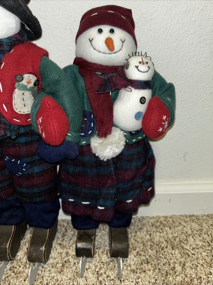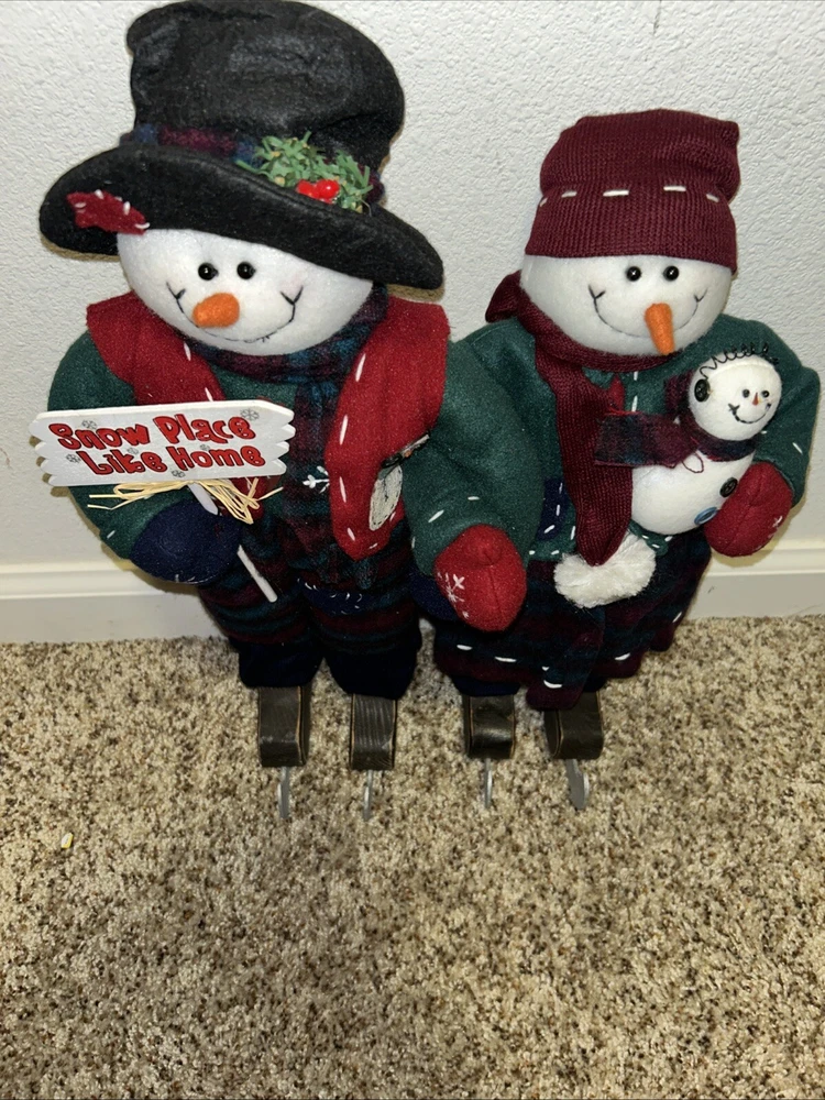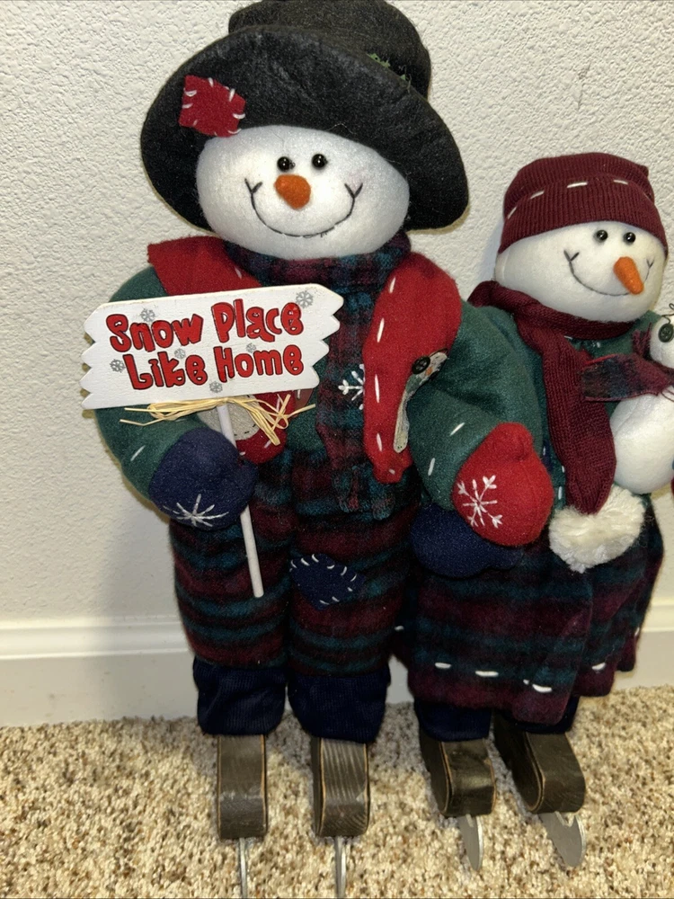 Get ready to add some festive cheer to your Christmas decorations with this adorable plush snowman and snow woman set. These vintage decorations are perfect for the holiday season and feature a cute snowman design with ice skates and a snow woman with a felt hat. Measuring at 16 inches tall, these plush decorations are sure to bring a smile to your face. The set includes snowmen and is made from high-quality plush material, making it a great addition to any collection. Whether you're looking to decorate your Christmas tree or add some charm to your holiday display, this plush snowman and snow woman set is a must-have. Celebrate the holiday season in style with these charming decorations!