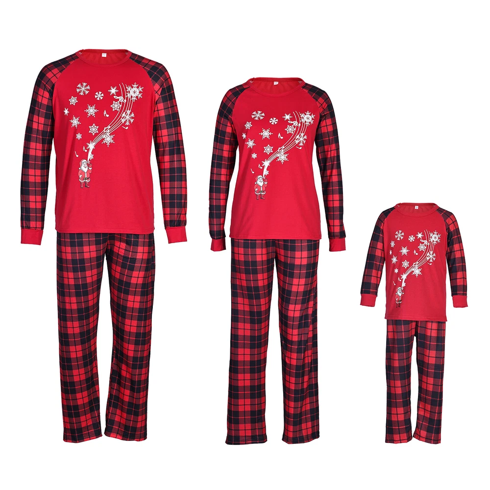 Christmas Pajamas Xmas Grid Print Nightwear Set Family Matching Boy Santa Claus