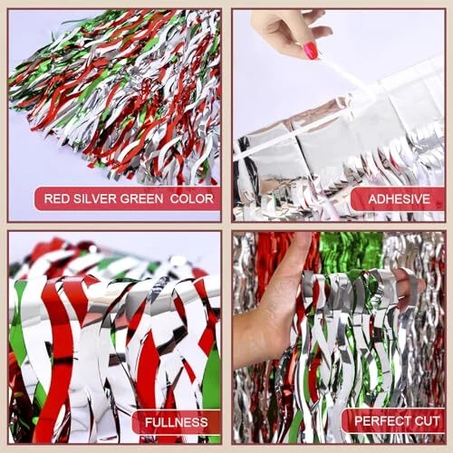 Christmas Party Decorations Pack Red White and Green Wavy Metallic Tinsel 2