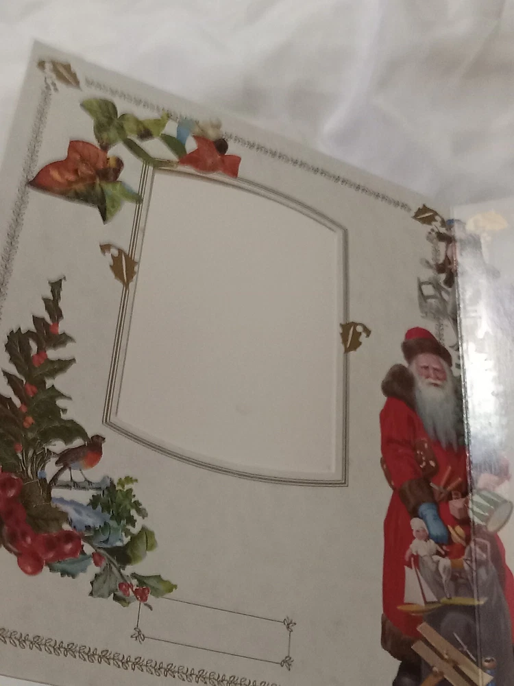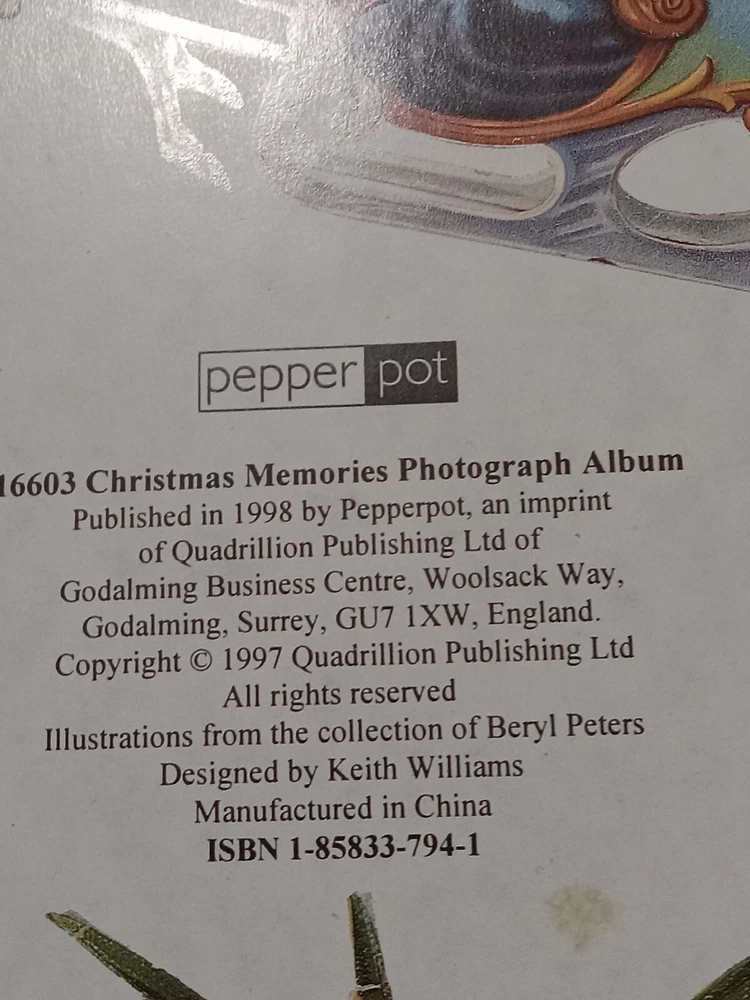 Capture the warmth and nostalgia of the holiday season with the Pepperpot Christmas Photo Album. Designed to hold your cherished memories this decorative album is a delightful way to preserve and showcase your festive photos. Its multicolor Victorian vintage look adds a touch of timeless charm to any Christmas display. Crafted from high-quality paper, this photo album was manufactured between 1990 and 1999, making it a unique piece of memorabilia from the late 20th century. Ideal for holding onto the magic of your holiday traditions, it's a classic addition to your photo album collection. Frames on pages are different sizes so it will hold most size photos. 7.5 inch x 9 inch and 1.5 inch thick Really cute and whimsical cottage core