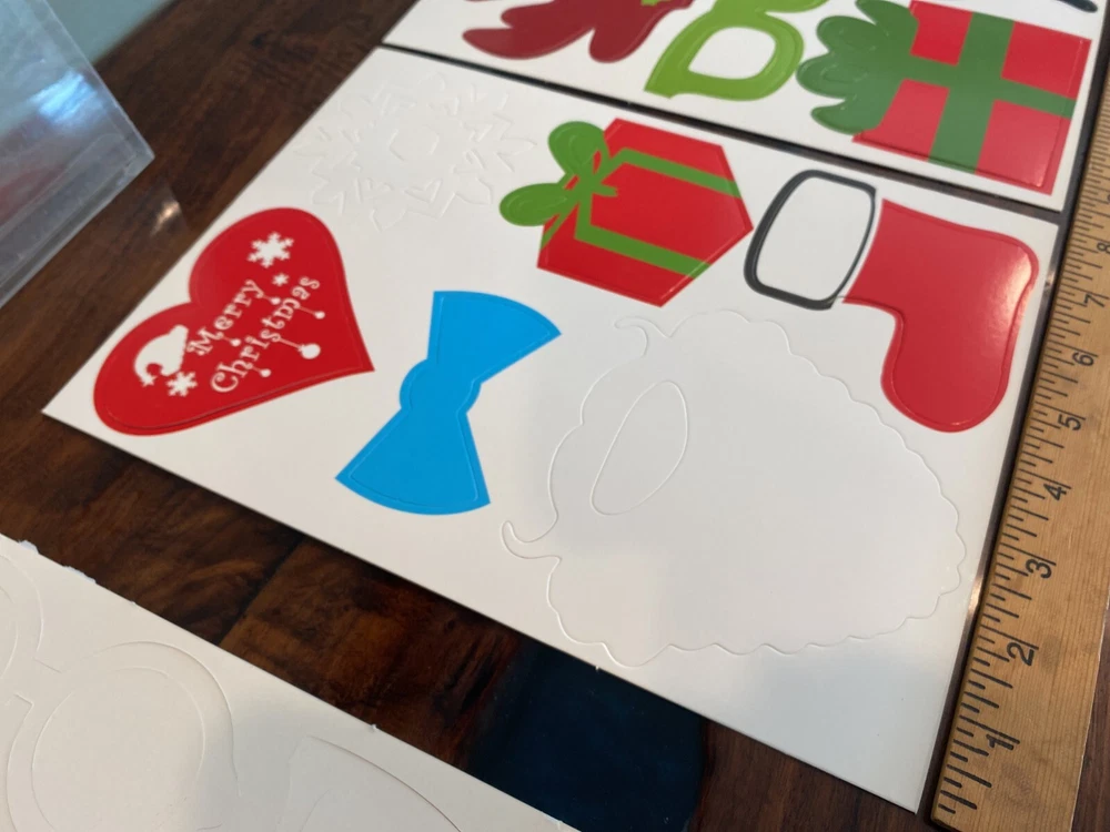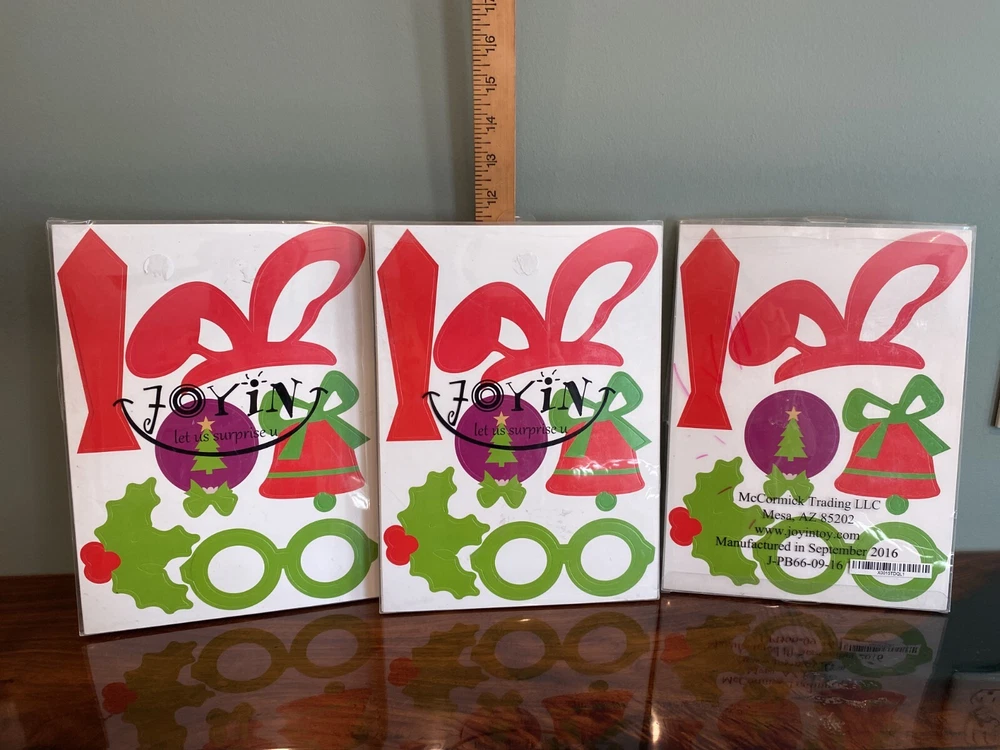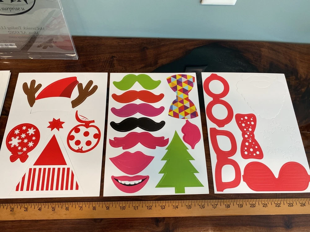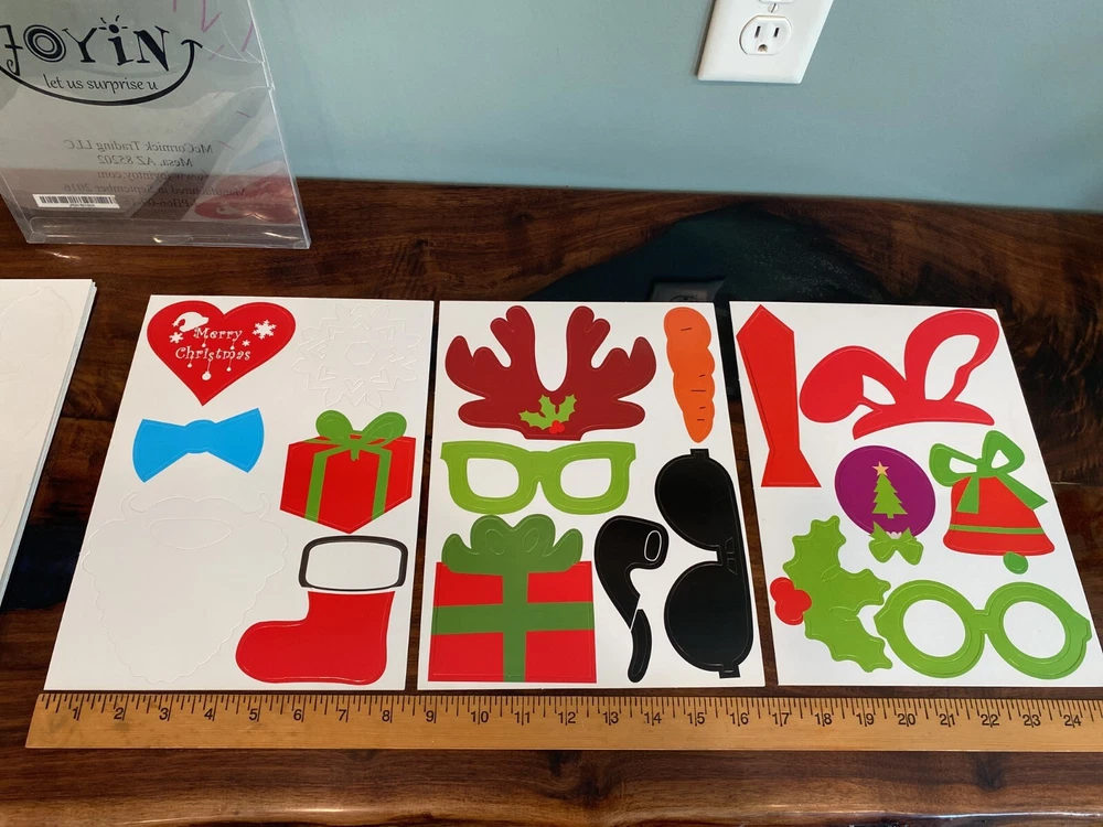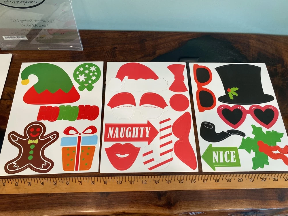 3 unused packages of Christmas themed photo booth/party props. Each package has approx. 66 cutouts. New/never used cardstock cutouts with packaging that shows some storage wear. Buy now and with Priority mail for quicker delivery. Be sure to carefully examine all 14 photos.
