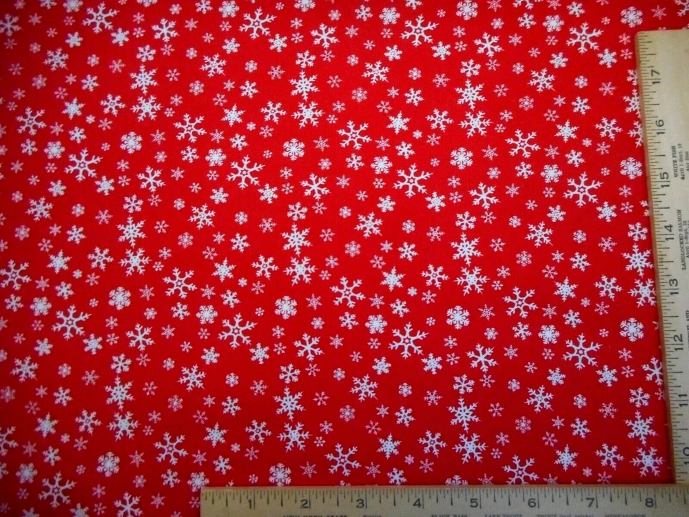 This is a very nice fabric that is 100% cotton. It has small snowflakes on a red background. READ: Because computer monitors show colors & shades differently, the fabric colors can vary from the photos. If you have any questions regarding this, contact me before p urchasing the item. I have been a quilter for 30 years and am an accomplished seamstress & would be happy to answer any questions you might have. This is for a 1 Yard of Fabric. If you purchase more than 1 Yard, I will give you one continuous cut. If you have a problem with anything you purchase from me, please contact me before leaving neutral or negative feedback and I will work it out with you. Payment is due within 48 hours. If payment isn't received within 5 days, it will automatically go to Ebay's resolution center for non-payment. INSTRUCTIONS FOR COMBINED SHIPPING: I Do combine shipping. You must add the items to your shopping cart and request an invoice from me using the REQUEST TOTAL BUTTON BEFORE completing the payment process, or I won't be able to combine your shipping. Payment is due upon receipt of your invoice. Thank you for looking and God bless you and your family. IF THERE IS A PROBLEM WITH ANY PURCHASE, PLEASE CONTACT ME, THE SELLER, VIA EBAY'S MESSAGING SYSTEM PRIOR TO OPENING A CASE--OPENING A CASE, EVEN IF RESOLVED SMOOTHLY, CAN HURT THE SELLER'S RATINGS. THANK YOU