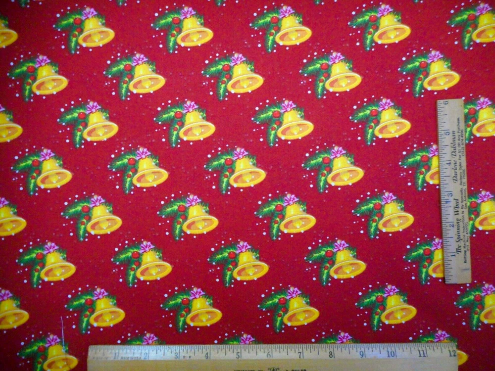 This is a very nice fabric that is 100% cotton. This is a premium quilting cotton by Fabric Arts. It has gold bells with green pine on them & white snow on a red background. NOTE: THIS IS NOT A BRIGHT RED. READ: Because computer monitors show colors & shades differently, the fabric colors can vary from the photos. If you have any questions regarding this, contact me before p urchasing the item. I have been a quilter for 30 years and am an accomplished seamstress & would be happy to answer any questions you might have. This is for a 1 Yard of Fabric. If you purchase more than 1 Yard, I will give you one continuous cut. If you have a problem with anything you purchase from me, please contact me before leaving neutral or negative feedback and I will work it out with you. Payment is due within 48 hours. If payment isn't received within 5 days, it will automatically go to Ebay's resolution center for non-payment. INSTRUCTIONS FOR COMBINED SHIPPING: I Do combine shipping. You must add the items to your shopping cart and request an invoice from me using the REQUEST TOTAL BUTTON BEFORE completing the payment process, or I won't be able to combine your shipping. Payment is due upon receipt of your invoice. Thank you for looking and God bless you and your family. IF THERE IS A PROBLEM WITH ANY PURCHASE, PLEASE CONTACT ME, THE SELLER, VIA EBAY'S MESSAGING SYSTEM PRIOR TO OPENING A CASE--OPENING A CASE, EVEN IF RESOLVED SMOOTHLY, CAN HURT THE SELLER'S RATINGS. THANK YOU
