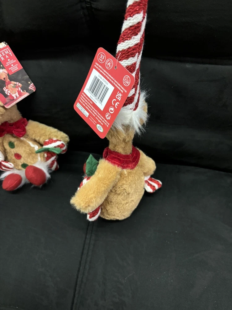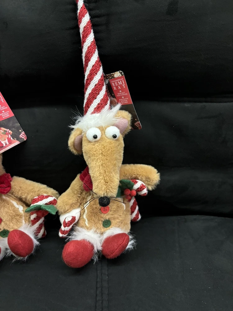 Add a whimsical touch to your holiday decor with the Christmas Rat Decoration. This charming 33cm plush toy is dressed in a festive Santa hat, ready to bring a smile to your face and warmth to your home. Its compact size makes it a perfect accent to any Christmas scene, from your tree to your mantel. Crafted with care from soft plush and fabric materials, this multicoloured rat ornament is part of the Rat Pack character family. It features intricate embroidery and felt details, showcasing the artist's dedication to creating unique, charming pieces. Whether it's for your own collection or as a gift, this rat toy is sure to be a hit at any holiday gathering.