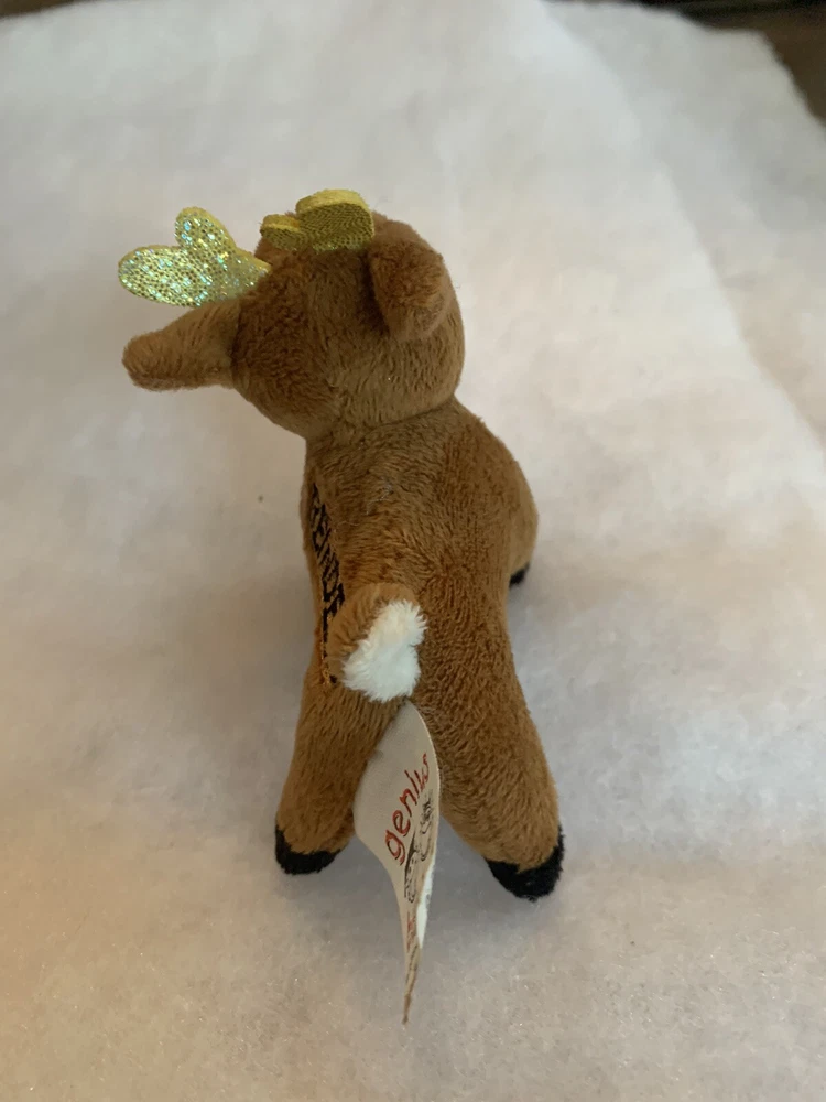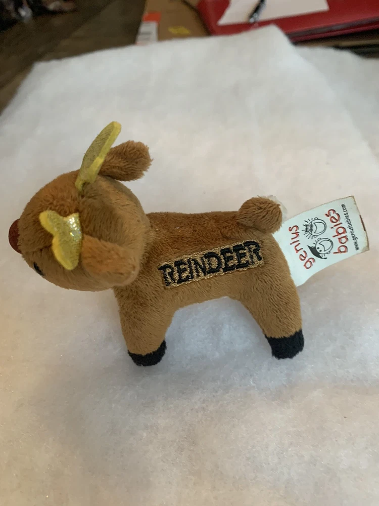 This adorable Christmas Reindeer plush toy is a must-have for the holiday season. With its soft and cuddly fabric material, it stands at 4 inches tall and weighs only .4 oz. The mini plush toy is perfect for collectors and children alike, and features a cute reindeer design with a white fur coat and red hat. This Genius Babies plush toy is part of the Animals collection and is a great addition to any holiday decor. It was manufactured in China in 2015 and comes in a unit quantity of 1. Whether you're looking for a festive gift or a cute collectible, this Christmas Reindeer plush toy is sure to bring joy to any setting.