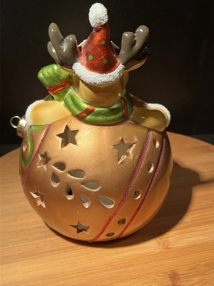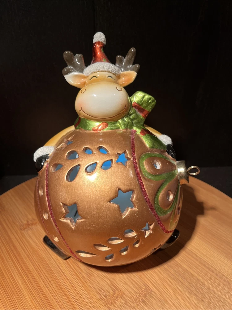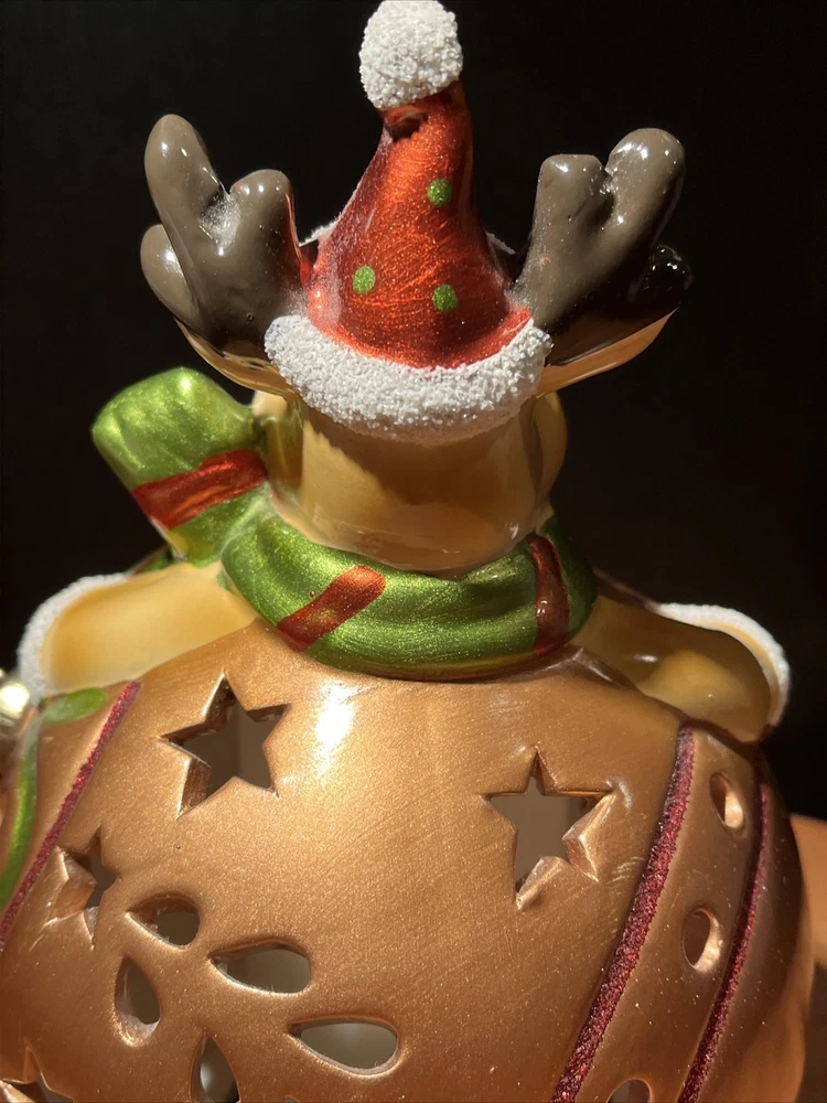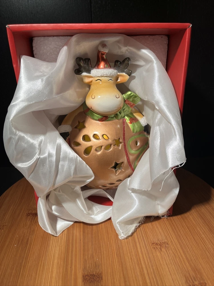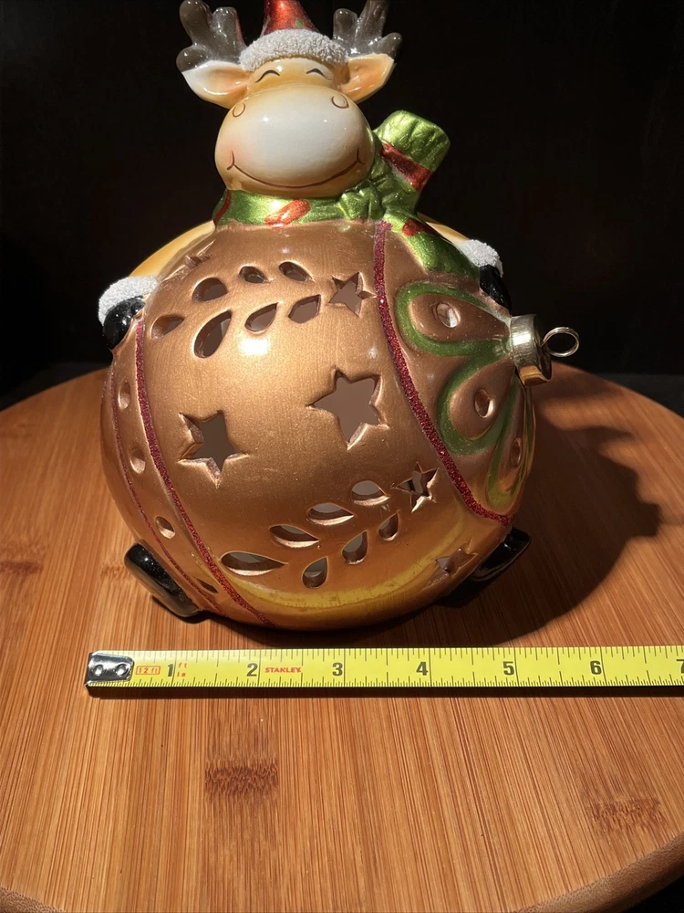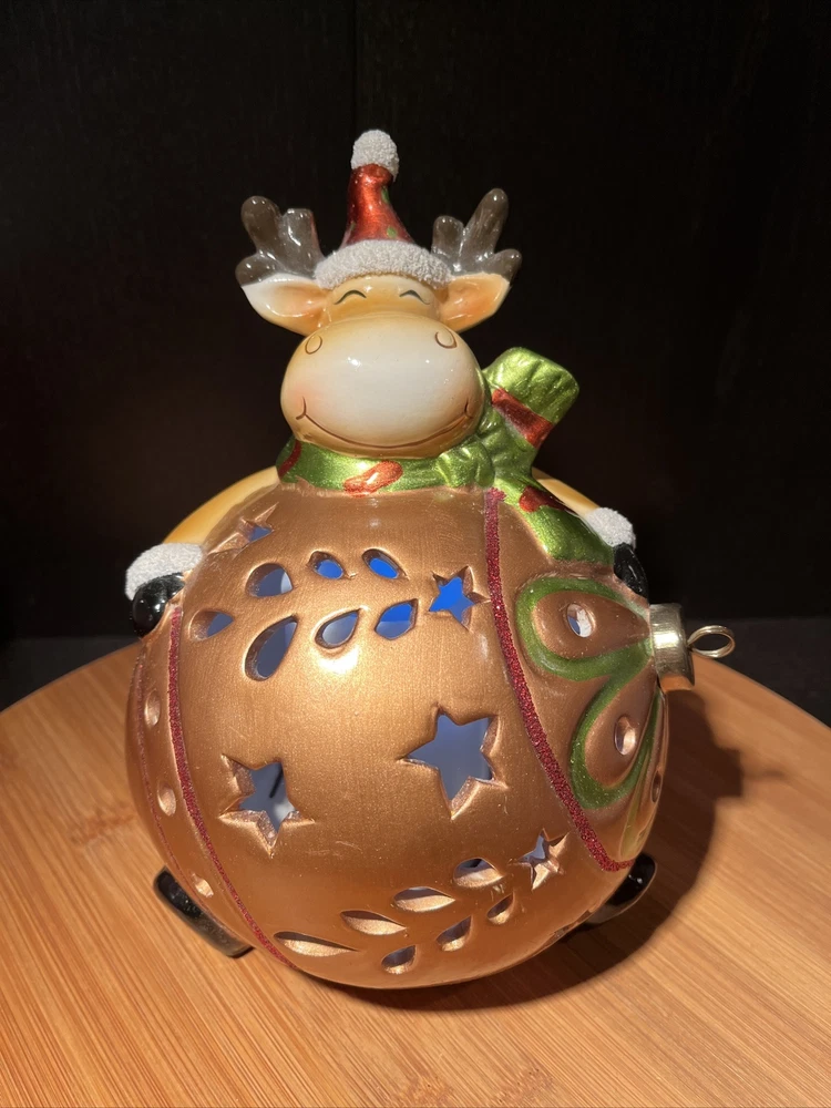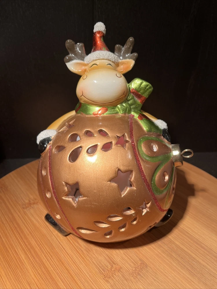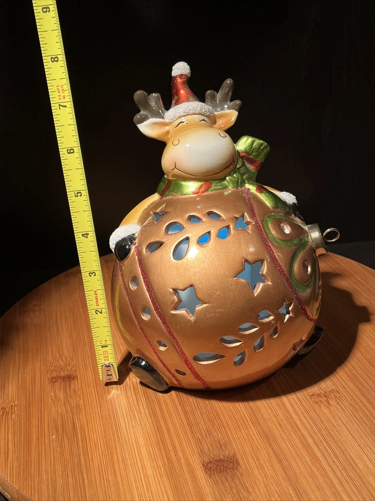 Add a touch of whimsy to your Christmas decor with this festive ceramic luminary featuring a reindeer design. The candle inside is flameless and can change colors for a fun and interactive display. Perfect for adding a cozy glow to your holiday festivities, this multicolor candle is powered by batteries and can be placed anywhere. Made of high-quality ceramic, this piece is both durable and charming. It's sure to be a conversation starter at your next holiday gathering. Check out the pics for condition- beautiful color, very good condition. Questions? Need more pics? Message us and we’ll get back to you asap! Thanks for viewing our item- we invite you to check out some of the other great items in our shop!