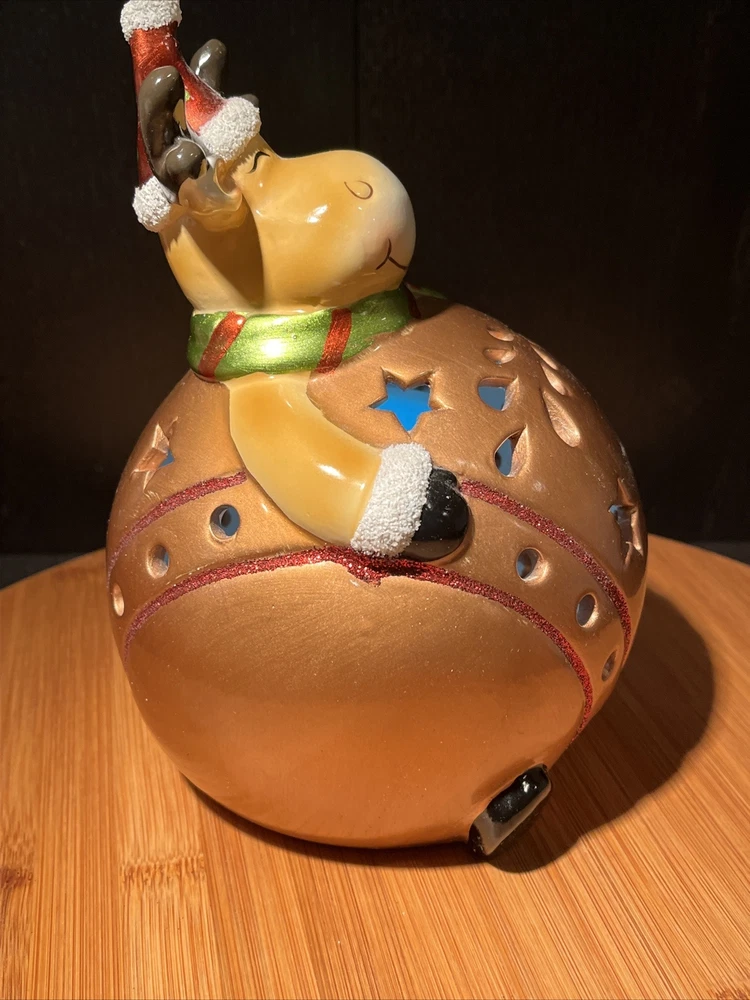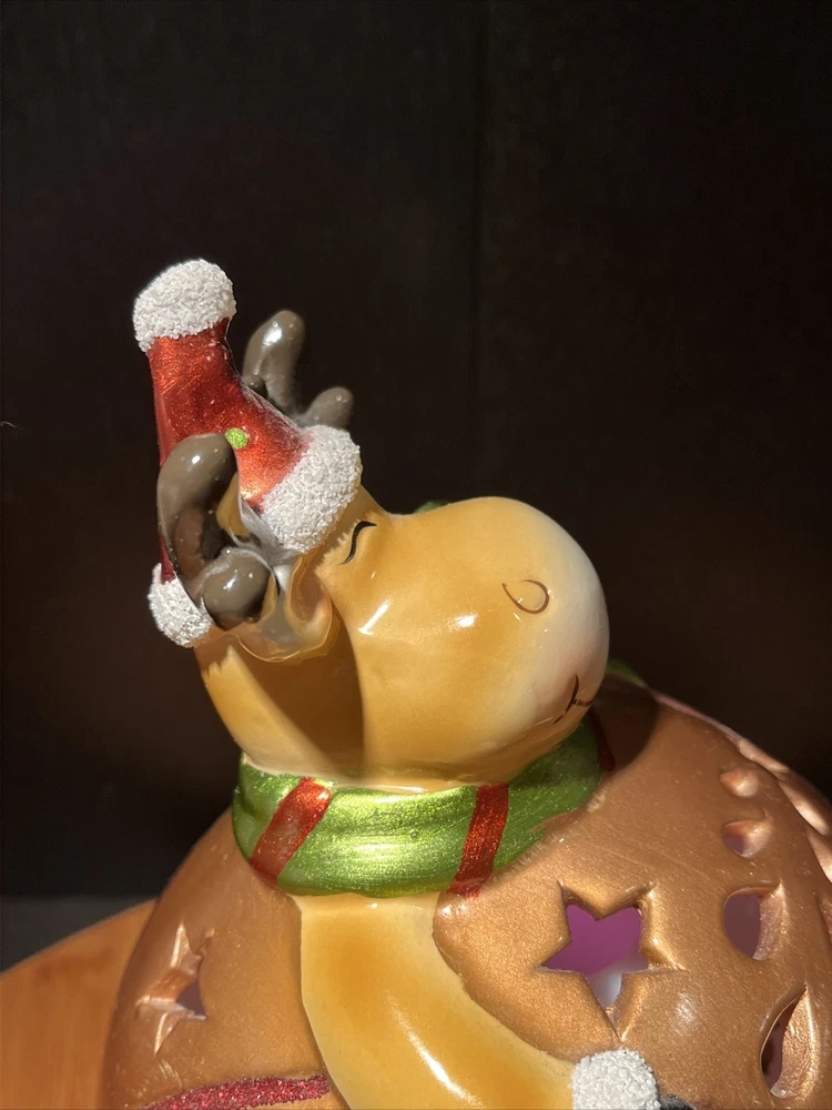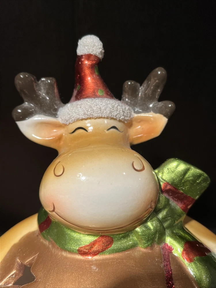 Christmas Reindeer Ceramic Luminary Flamelss Candle Color Changing Or Solid