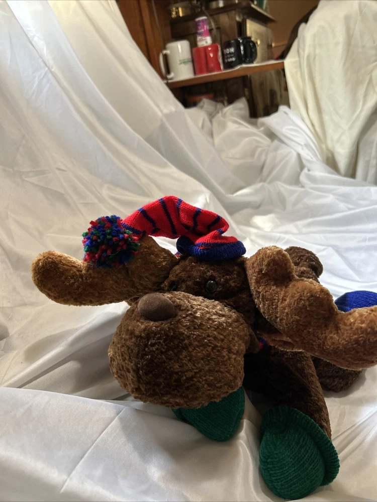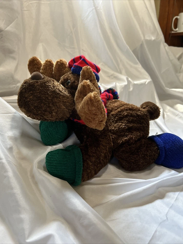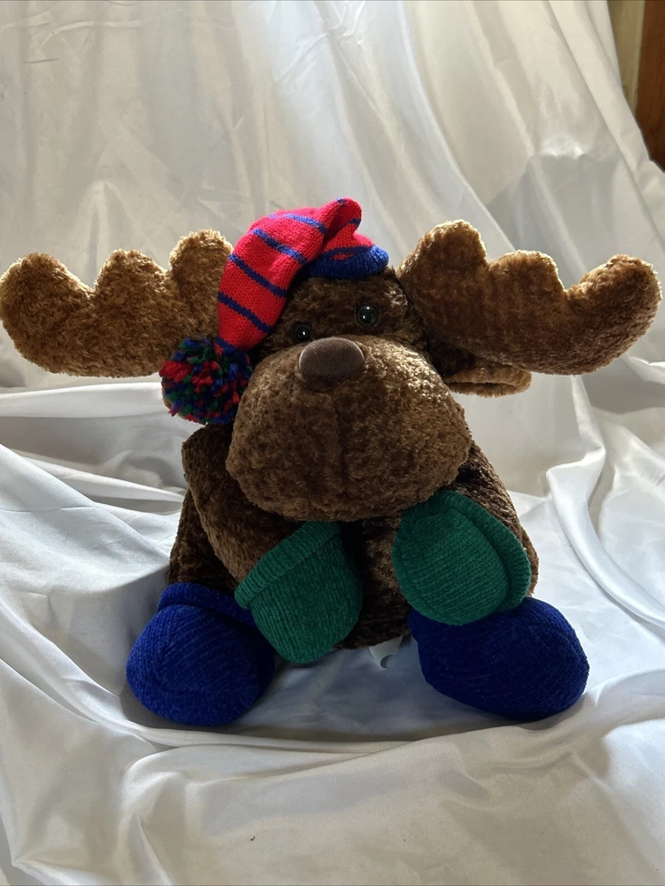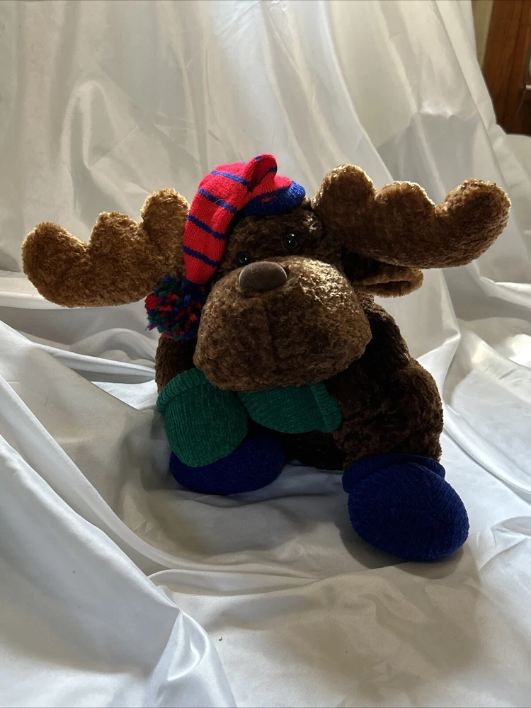Christmas Reindeer Plush Stuffed Animal Bean Bag Holiday Scarf & Hat