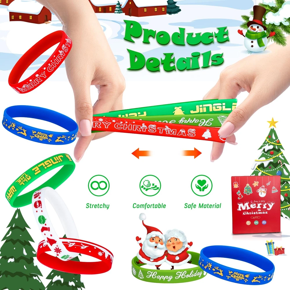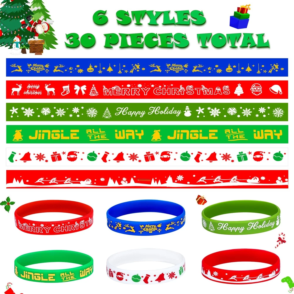 Christmas Design: Our Christmas rubber bracelets feature an red and green design with classic Christmas elements such as jingling bells, twinkling stars, and cheerful Santas, making these bracelets festive and always a hit among the kids! Christmas bracelets christmas bracelets bulk christmas bracelets for girls kids christmas bracelets silicone christmas bracelets kids christmas bracelets bulk christmas bracelet nightmare before christmas bracelet christmas bracelet for kids. 30 Pieces Party Pavors: You will receive a total of 30 rubber bracelets coming in 6 designs, 5 pieces of each design. These Christmas bracelets are made of high quality rubber, odorless and soft. Safe for children to wear. Christmas party favors nightmare before christmas party favors christmas party favors for kids stocking stuffers stocking stuffers for kids stocking stuffers for teens christmas stocking stuffers kids stocking stuffers goodie bag stuffers kids goodie bag stuffers. Stretchable Size: These rubber bracelets for kids are 2.67 inches in diameter, flexible and suitable for all school-age children, comfortable to wear. Rubber bracelets, rubber bracelets for kids, rubber bracelets bulk, silicone bracelets, silicone bracelets for kids, silicone bracelets bulk, kids rubber bracelets, rubber bracelets for teens, silicone bracelet, kids bracelets, bracelets for kids, silicone wristbands, kids bracelets bulk, bulk bracelets for kids, bracelets kids. Perfect Party Supplies: 30 PCS Christmas bracelets bulk can be used as Christmas party decorations, providing a fun and festive atmosphere for kids. Kids christmas party favors goodie bags fun christmas party favors small christmas party favors christmas party favors for classroom toddler christmas party favors christmas party favors bags for kids toddler stocking stuffers stocking stuffers for kids 8-12 goodie bag stuffers for kids 8-12 nightmare before christmas toys. Ideal Christmas Gifts: Our rubber bracelets have a unique design and come in a set of 30, making them ideal for gift exchanges, Christmas holiday parties, or simply as a token of appreciation to someone special. Christmas gifts christmas gifts for kids nightmare before christmas gifts christmas gifts for teen girls christmas gifts for girls christmas gifts for boyfriend bulk christmas gifts classroom prizes classroom prizes elementary classroom prizes for students classroom prizes bulk.